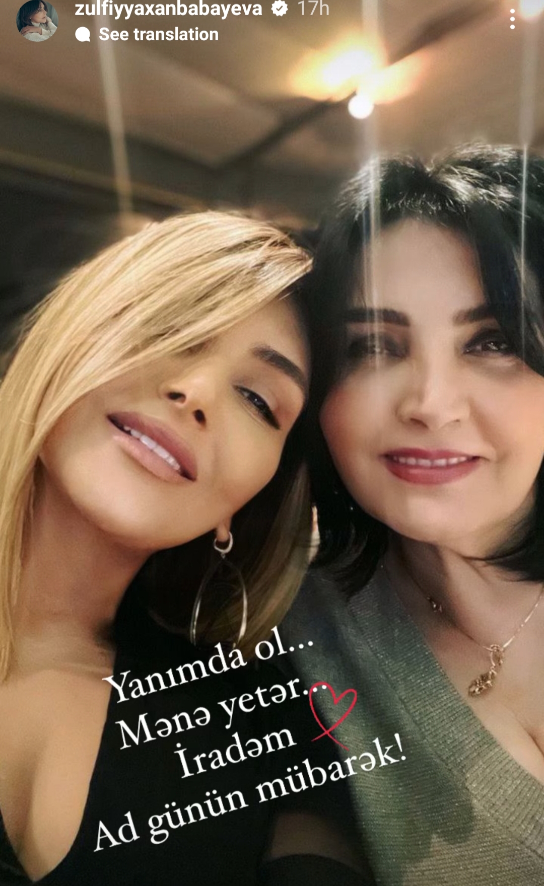 Teleqraf.com xəbər verir ki, Zülfiyyə Xanbabayeva bacısı İradə ilə fotosunu şəxsi İnstaqram hesabında paylaşıb.