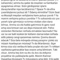 Mənim Kamran Həsənliyə tövsiyəm: televiziya mövzularını artıq bitirsin. O ki qaldı gənclərin efirlərə pul verməsinə və ödənişli efirə çıxmasına, deyim xəbəriniz olsun ki, hələ sovet dövründən belədir. Pulla efirə çıxmaq irsi olaraq keçib".