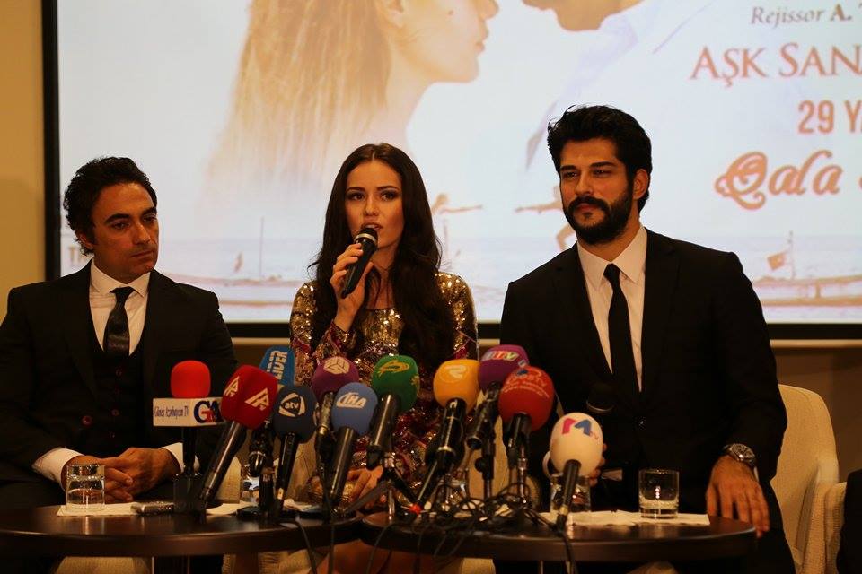 Burak Özçivit: Öncəliklə qeyd edim ki, biz bu gün Azərbaycanda olmaqdan çox məmnunuq. Azərbaycan bizim qardaş ölkəmiz və bizim məmləkətimizdir. Bakını da sizləri də çox sevdik. Filmə gəlincə, ekran əsərinin hekayəsi mənə aiddir. Və bu hekayə əslində cümlədən başladı. Bilirsiniz ki, “Çalıquşu” serialında Fahriye ilə bərabər oynayırdım, ikimizin arasında çox gözəl enerji yaranmışdı. Və biz bu enerjini davam etdirmək istədik. Amma bu, serial ola bilməzdi. Çünki “Çalıquşu”nda 30 seriya çəkildik. Yeni mövsümdə isə Fahriyə də, mən də serialda oynamaq istəmirdik. Ona görə düşündün ki, nə edək? Qarşıdan isə yay gəlirdi və bunu dəyərləndirmək lazım idi. Qərara gəldik ki, film çəkək. Mənim lap çoxdan yazdığım hekayələrim var. Sayı təxminən 30-a yaxındır. Amma o hekayələrin heç birini bu filmdə istifadə etmədik. Bu film bir cümlədən ibarət qısa hekayəmdən yola çıxılaraq çəkildi. Bu hekayə balıqçı oğlanla dondurma satan qızın hekayəsi idi. Hekayəni Fahriyəyə danışdım. Əlavə etdim ki, hadisələr Egedə baş verir. Razılaşdı. Soruşdum, mahnı oxuyarsanmı? Dedi oxuyaram. Aramızda olan bu dialoqla filmimizə start verdik. İşin davamında ssenarisi yazıldı, çəkildi və bu günlərə gəldik. Amma yenə deyirəm məqsədimiz “Çalıquşu”nda başlayan enerjini bu günlərə gətirmək idi.