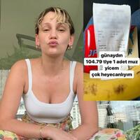"1 ədəd 104.79 lirəlik banan yeyəcəyəm, çox həyəcanlıyam" - deyə paylaşımında qeyd edib.