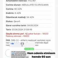 Görüntüləri sosial şəbəkədə paylaşan Elvin “Həm ödəniş etmişəm, həm də 60 manat cərimə yazılıb? Şikayətimi hara edim, bilmirəm” sözlərini yazıb.