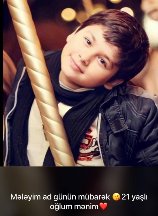 A.Gəncəli oğlu Qədirxanın fotosuna "Mələyim, ad günün mübarək. 21 yaşlı oğlum mənim" sözlərini yazıb.