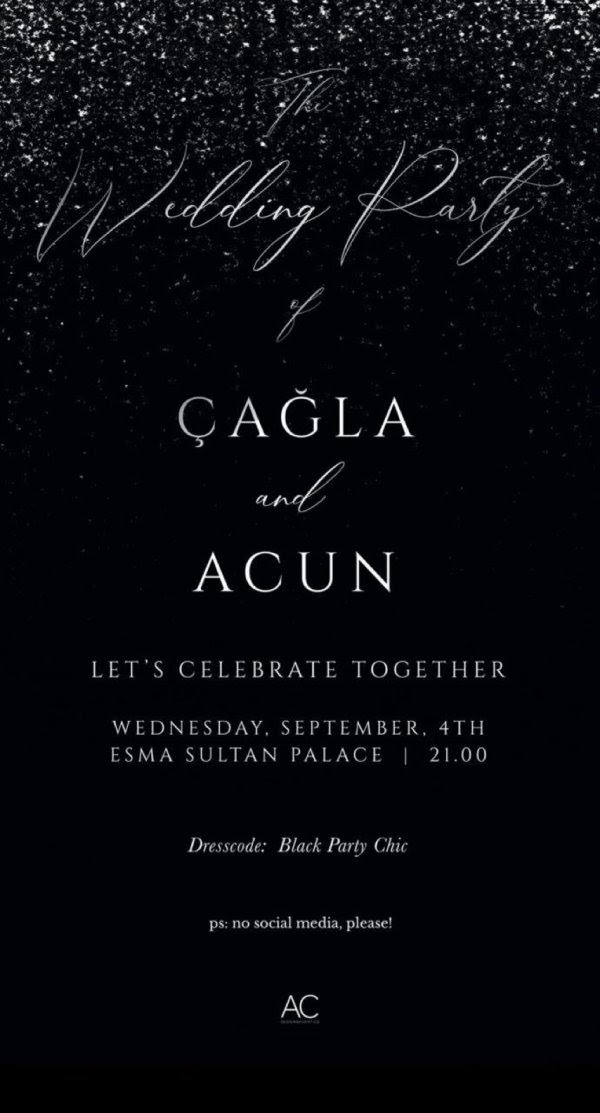 Teleqraf.com xəbər verir ki, Acun Ilıcalı sadə, qara fonda yazılmış rəqəmsal toy dəvətnaməsi hazırlayıb və yaxın ətrafına göndərib.