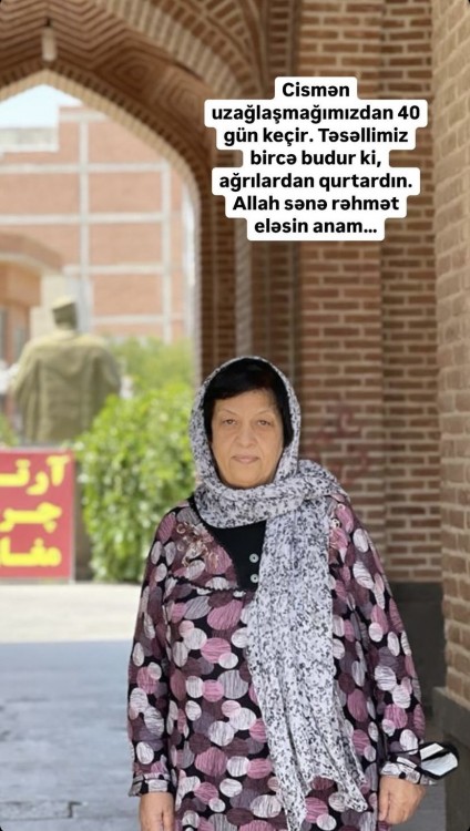 "Cismən uzaqlaşmağımızdan 40 gün keçir. Təsəllimiz bircə budur ki, ağrılardan qurtuldun. Anam, Allah sənə rəhmət eləsin".