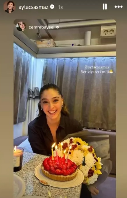 Aytaç Şaşmaz da ad gününü romantik paylaşımla qeyd edən sevgilisinə "Yaxşı ki, varsan" deyə cavab verib. Ardınca Aytaç Şaşmaz hazırda "Leyla" serialında baş rolu canlandıran sevgilisinə çəkiliş meydançasında sürpriz edib.