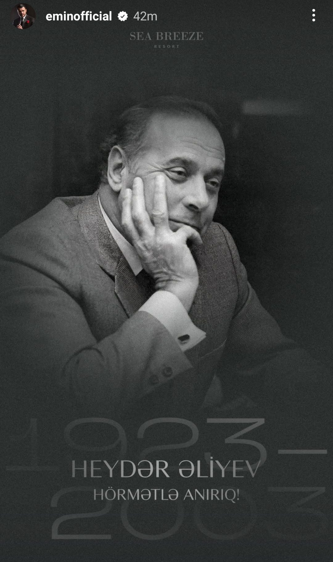 Xalq artisti Emin Ağalarov Ulu Öndər Heydər Əliyevin anım günü ilə əlaqədar sosial media hesabında paylaşım edib.