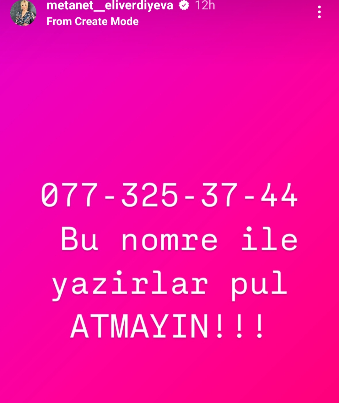 Bacımın ad günündə birinə mesaj yazıblar ki, əşyalarım xarqoda qalıb, pul ver. Həmin şəxsin nömrəsinə səsli qeyd də göndərdik, dinlədi, cavab vermədi. Bilmirəm oğlandır, yoxsa qızıdır. Ondan bu gün hüquq-mühafizə orqanlarına şikayət edəcəm".