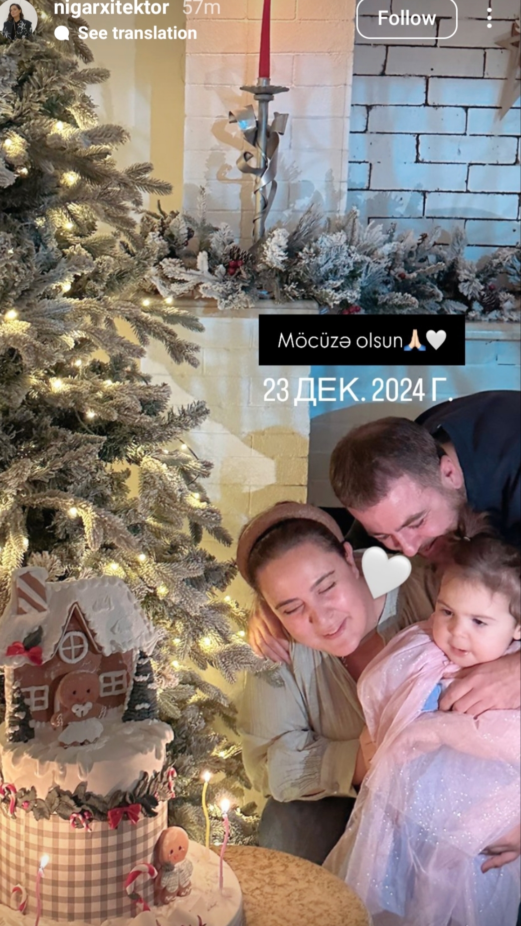 Teleqraf.com xəbər verir ki, Nigar Baxşəliyeva ailəsi ilə çəkilən fotosunu İnstaqramda hekayə bölümündə paylaşaraq "Möcüzə olsun", - deyə qeyd edib.