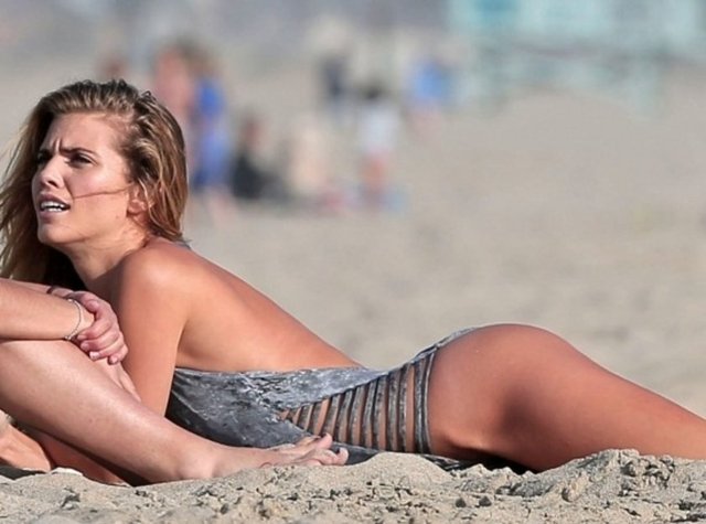 Tanınmış amerikalı aktrisa Anna Layn Makkord çimərlikdə təkbaşına günəşlənərkən paparatsilərin hədəfinə düşüb.