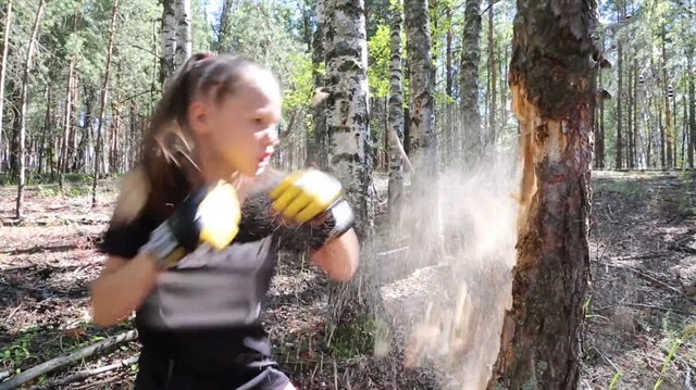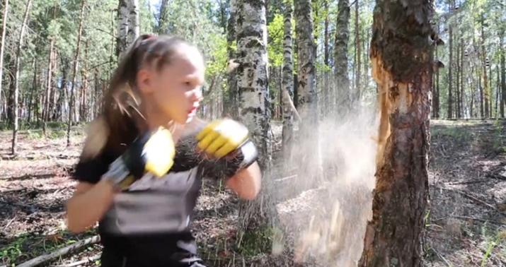 10 yaşlı qız yumruqları ilə ağacı parçalayıb.