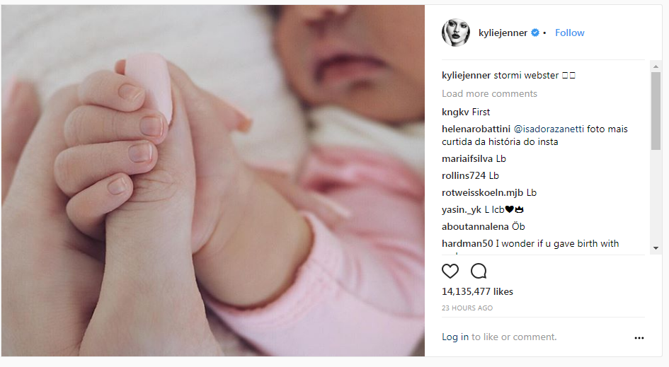 Teleqraf.com xəbər verir ki, çərşənbə günü model fevralın 1-i dünyaya gələn qızının şəkilini paylaşıb. Bir sutkadan az bir müddət ərzində şəkil 14 milyon "layk" toplayıb. Ümumilikdə Cennerin 103 milyon izləyicisi var.