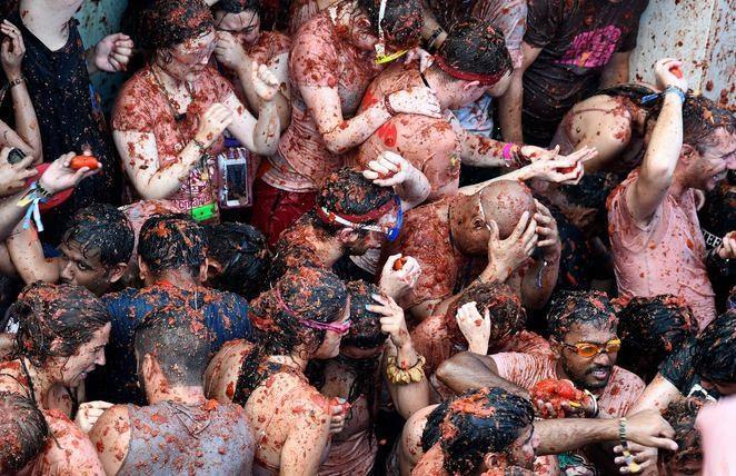 Teleqraf.com xəbər verir ki, Bunyol şəhərində keçirilən pomidor döyüşünə dünyanın dörd bir yanından 22 min turist qatılıb.