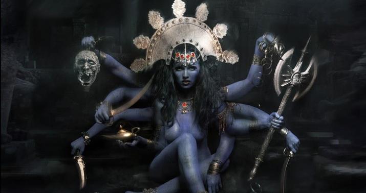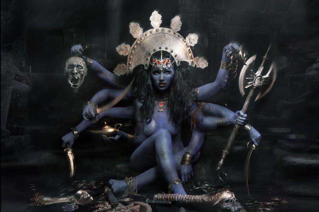 Tanrıça Kali ən qorxunc fiqurlardan biridir. Şivanın arvadı – şəri məhv edən və azadlığın qoruyucusu. Gözlərinədək qəzəblə dolu olan Kali əri Şivanı öldürən bir tanrıçadır. Boynuna taxdığı insan kəllələri müdrikliyini, belinə taxdığı qollar isə gücünü simvollaşdırır. Kali həm də dağıdıcı tanrıdır, eyni zamanda doğandır. Şivanın şaktisi həyat enerjisidir. Güzəştsizdir. Kali rəqs etməyə başlayanda yer titrəyir və bütün pisliklər yox olur. İnsanlar arasında ən çox hörmət edilən ilahədir. Çoxlu məbədləri var. Kali qəddar və qaniçən tanrıça, bəzən mülayim və sakit Parvatiyə çevrilir. Parvati bir çox formada ola bilər.