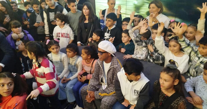 Braziliya futbolunun canlı əfsanəsi Ronaldinyonun Bakıda kimsəsiz uşaqlarla görüşü olub.