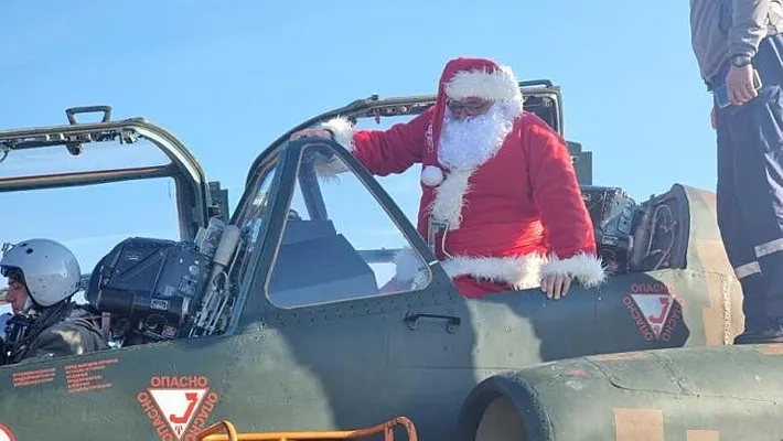 Şaxta baba Su-25 hərbi təyyarəsi ilə Bolqarıstana gəlib.