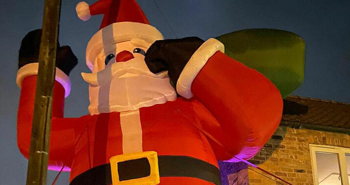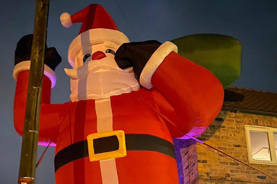 Peter Rudlej adlı kişi 4 il əvvəl 1200 dollarlıq səkkiz metr hündürlüyündə hava ilə şişən Şaxta baba alıb. O vaxtdan bəri yaşadığı ərazidə bu əlamətdar hadisəyə çevrilib.