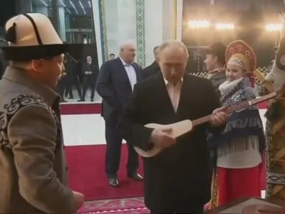 Rusiya Prezidenti Vladimir Putin Bişkekə səfəri zamanı qırğız milli musiqi aləti olan qopuz çalıb.