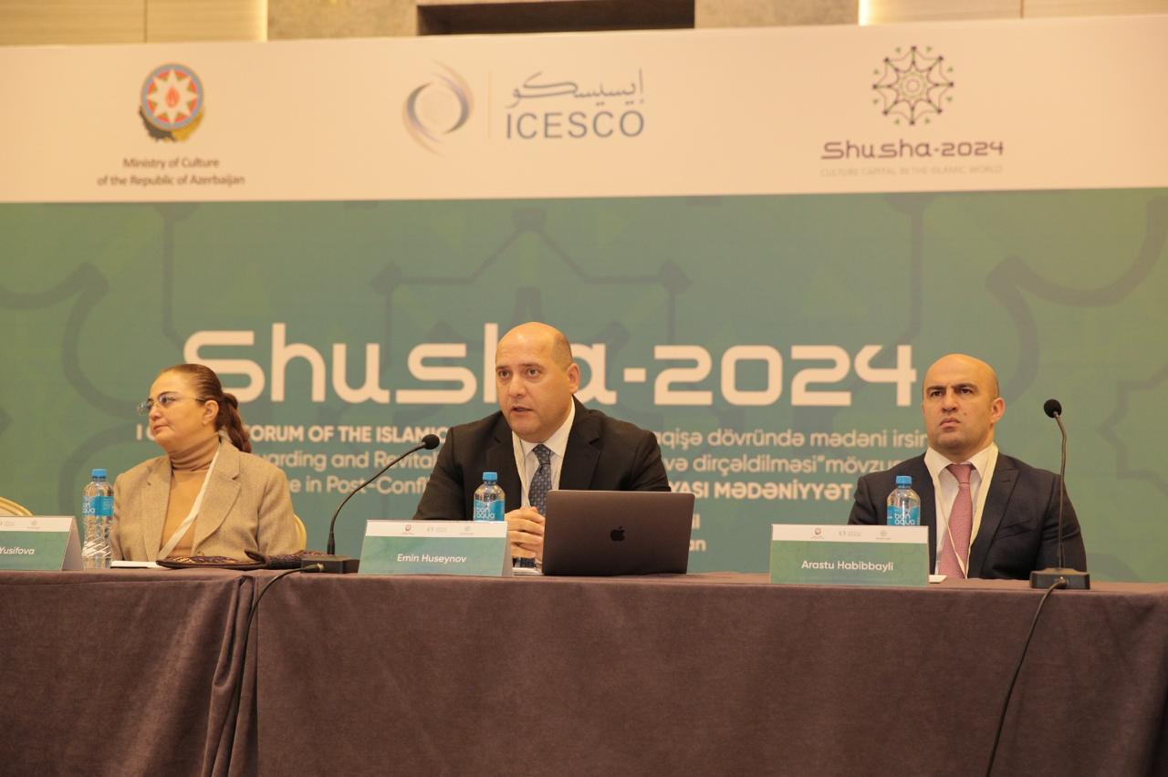 Şuşa Şəhəri Dövlət Qoruğunun icraçı direktoru Tural Novruzov Şuşa şəhərinin tarixi-mədəni zənginlikləri barədə məlumat verib. Qoruq ərazisindəki abidələrin, o cümlədən İslam irsinin bərpa və konservasiyası sahəsində görülən işlərdən söz açıb.