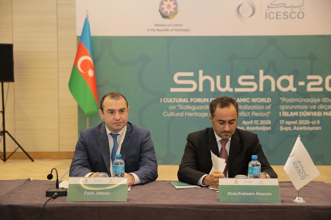 Teleqraf xəbər verir ki, Azərbaycan Respublikası Mədəniyyət Nazirliyinin təşkilatçılığı, ICESCO və Azərbaycan Respublikası Prezidentinin Şuşa Rayonunda Xüsusi Nümayəndəliyinin tərəfdaşlığı ilə gerçəkləşən forumda ölkəmizdən və ICESCO-dan rəsmilər, quruma üzv bir sıra respublikalardan nümayəndələr, mədəniyyət xadimləri və media təmsilçiləri iştirak edirlər.