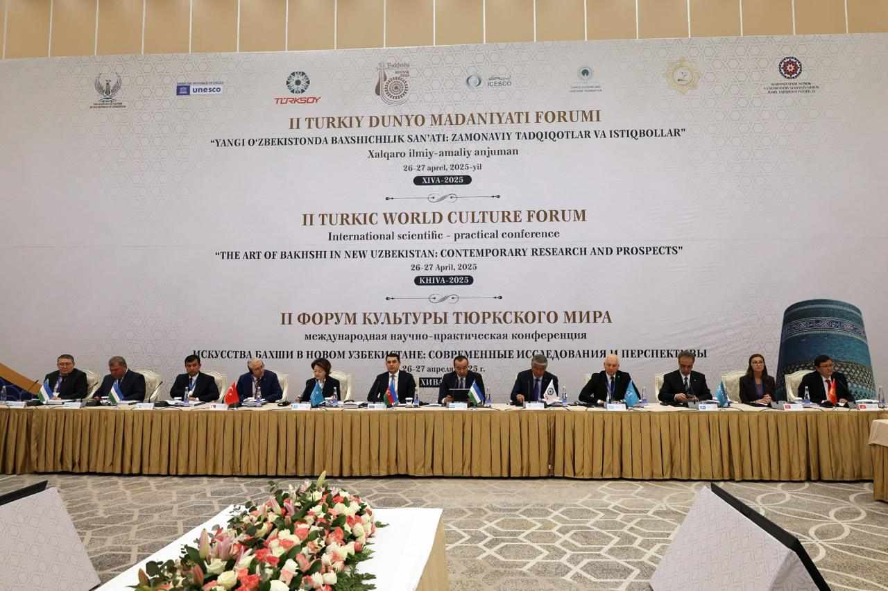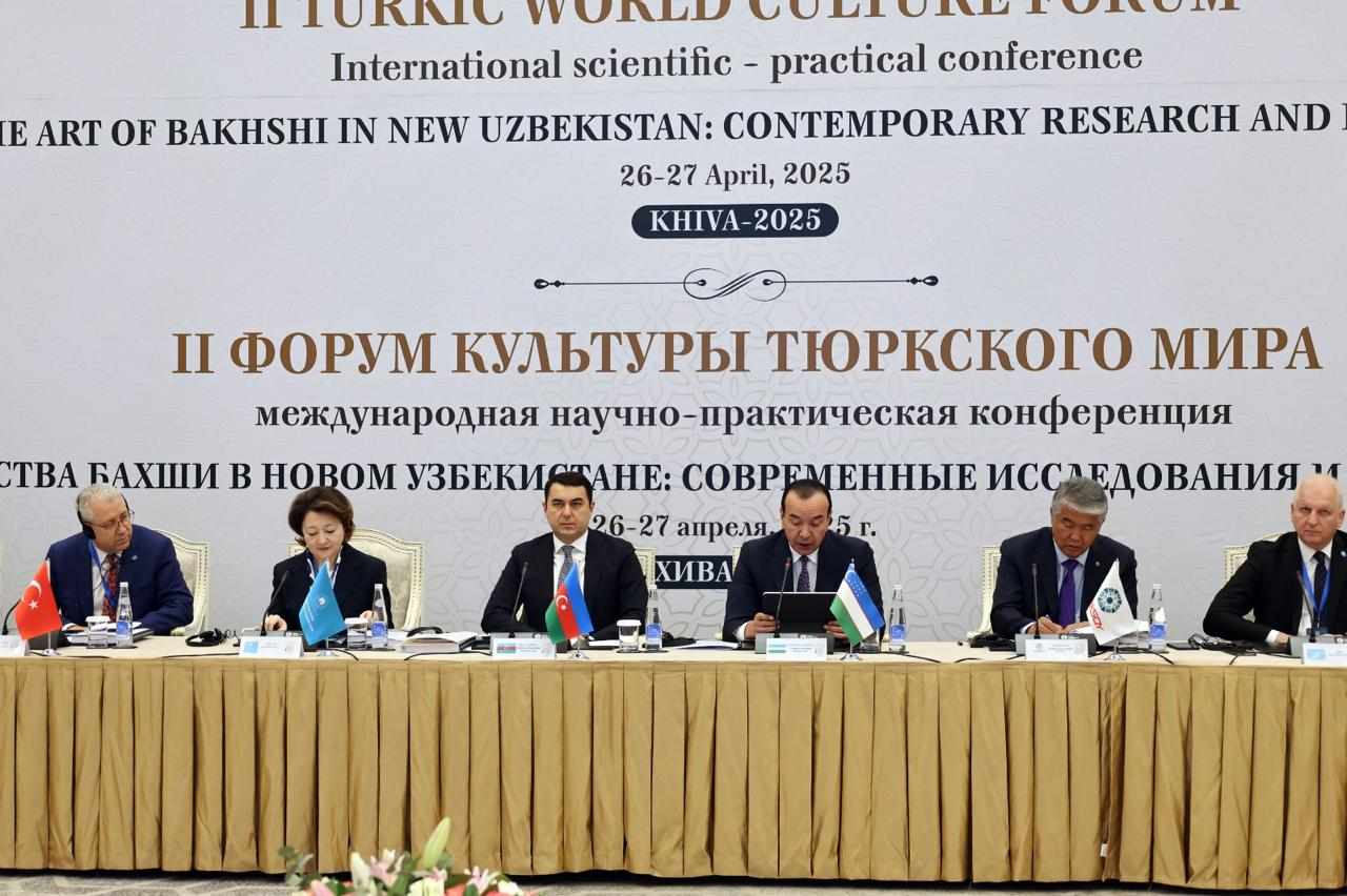 Mədəniyyət naziri Adil Kərimlinin iki qardaş ölkə arasında əlaqələrin, digər sahələrdə olduğu kimi, mədəniyyət sahəsində də bu gün intibah dövrünü yaşadığını bildirib. Nazir I Türk Dünyası Mədəniyyət Forumunun 2023-cü ilin oktyabr ayında Azərbaycanın mədəniyyət paytaxtı Şuşa şəhərində keçirildiyini, ikinci Forumun isə qardaş ölkənin Şuşa ilə qardaşlamış Xivə şəhərində təşkil olunduğunu diqqətə çatdırıb. Qeyd olunub ki, Türk Dünyası Mədəniyyət Forumu qardaş ölkələr arasında dostluq münasibətlərinin dərinləşməsində, əməkdaşlıq əlaqələrinin yeni səviyyəyə yüksəlməsində mühüm rol oynayır: “Birinci Forumda Beynəlxalq Türk Akademiyasının dəstəyi ilə ilk dəfə “Türk dünyası mədəni marşrutu” layihəsi təqdim edildi, mədəni irs sahəsi üzrə rəhbər şəxslərin ilk görüşü keçirildi, bir sıra təşəbbüslər irəli sürüldü. Sevindirici haldır ki, birgə təşəbbüsümüz dövlət başçılarımız tərəfindən də təqdirlə qarşılanıb.