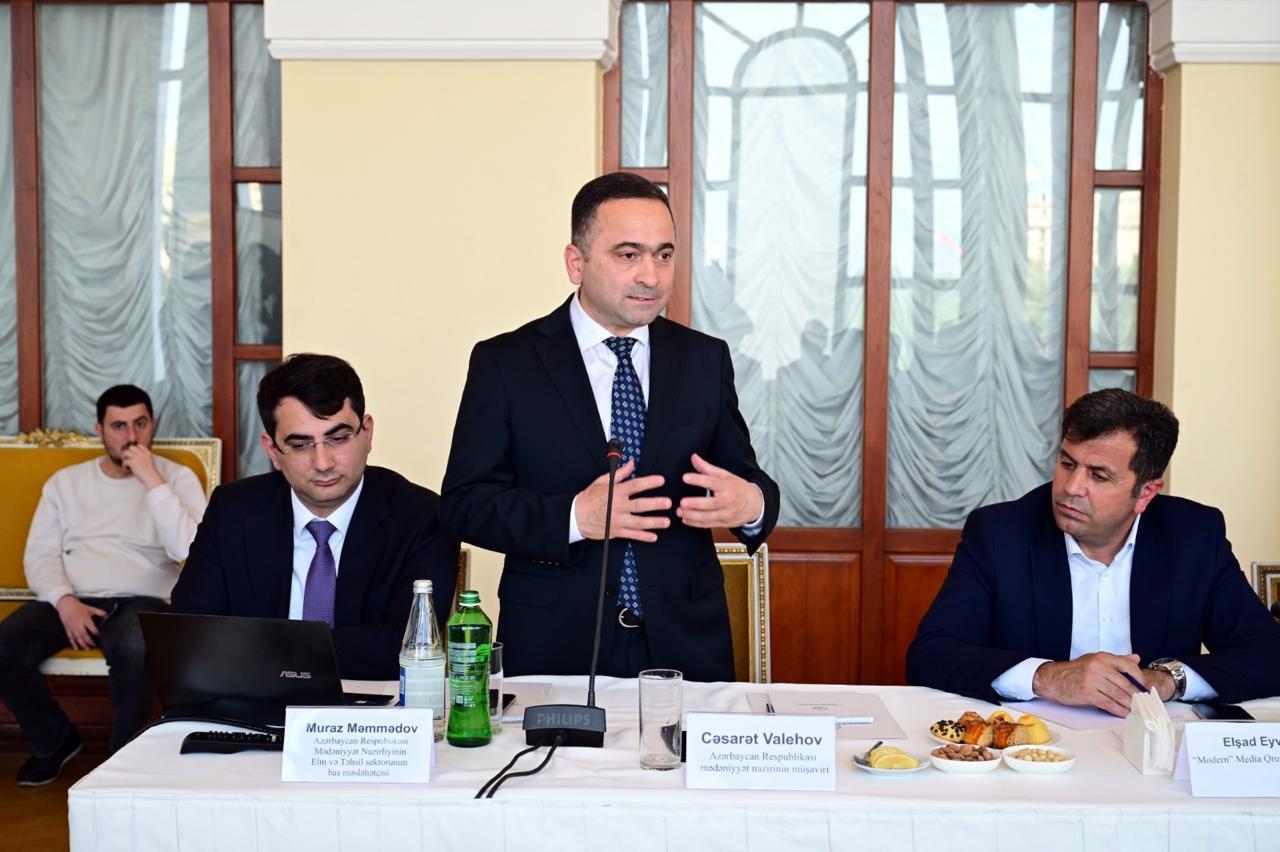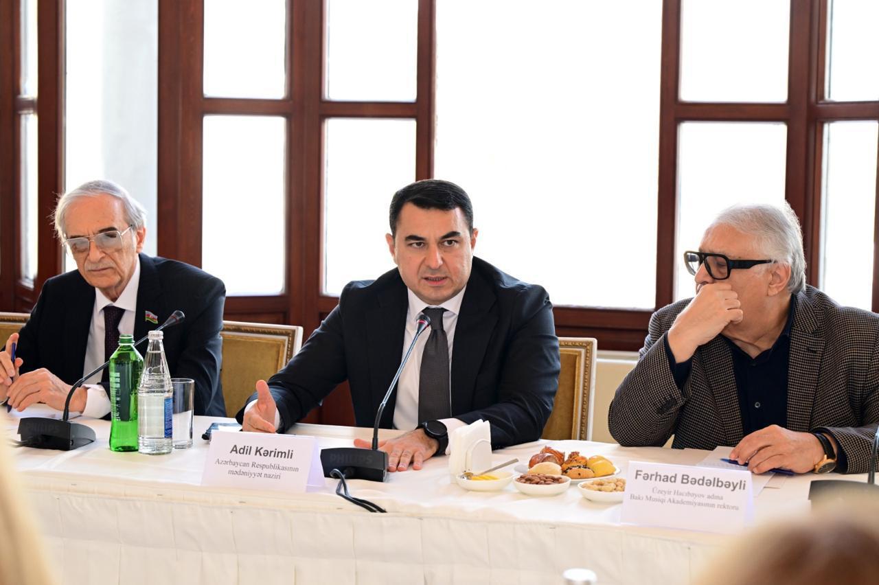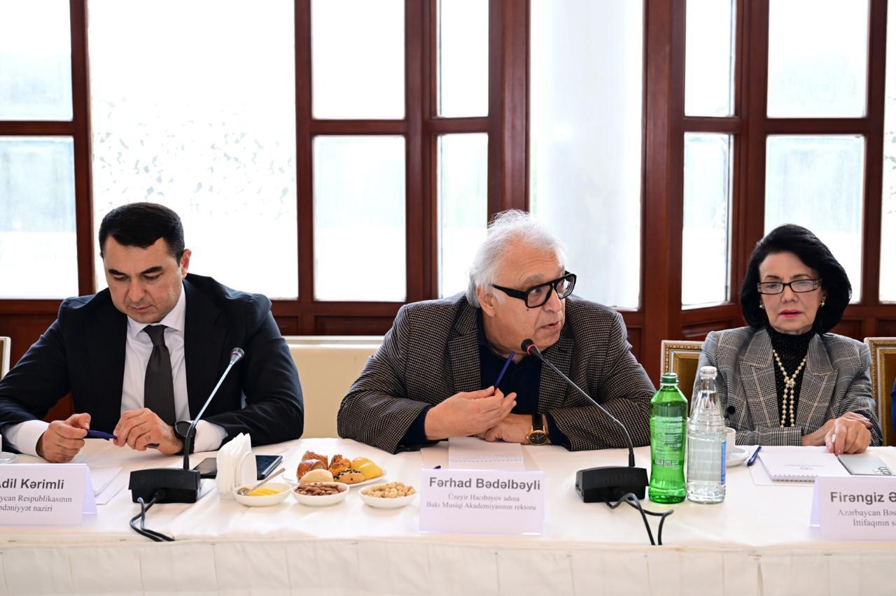 BMA-nın rektoru Fərhad Bədəlbəyli, Milli Məclisin komitə sədrləri Polad Bülbüloğlu, Anar İsgəndərov, Hicran Hüseynova, ADMİU-nun rektoru Ceyran Mahmudova, Azərbaycan Milli Konservatoriyasının rektoru Kamilə Dadaşzadə, Azərbaycan Rəssamlıq Akademiyasının prorektoru Fuad Salayev, BMA-nın professorları Nəzakət Rimazi, Könül Hüseynova, Qarabağ Universitenin dekanı bəstəkar Türkər Qasımzadə və başqaları çıxış edərək Mədəniyyət Nazirliyi tərəfindən həyata keçirilən islahatların əhəmiyyətini vurğulayıblar.