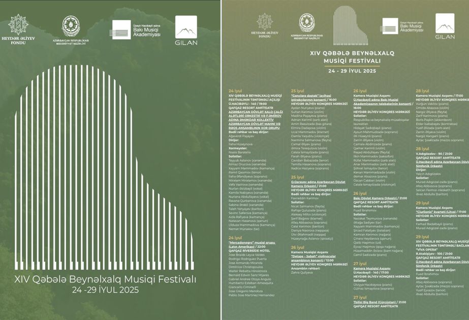 Heydər Əliyev Fondunun təşəbbüsü və təşkilatçılığı, Mədəniyyət Nazirliyi, Üzeyir Hacıbəyli adına Bakı Musiqi Akademiyası və “Gilan”ın dəstəyi ilə keçirilən XIV Qəbələ Beynəlxalq Musiqi Festivalı çərçivəsində iyulun 28-də Heydər Əliyev Konqres Mərkəzində növbəti konsert proqramı təqdim olunub.