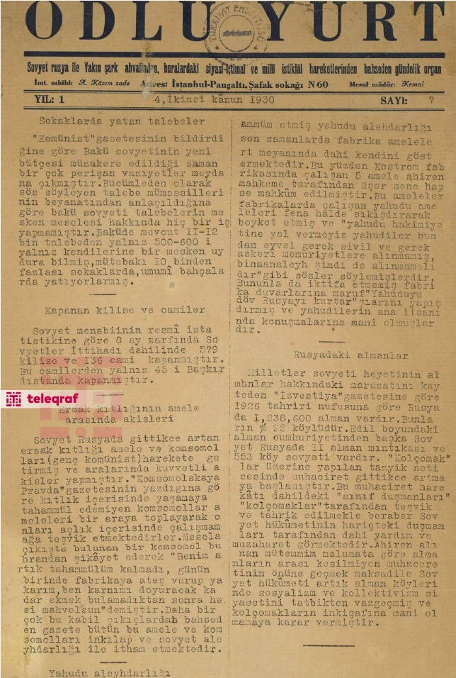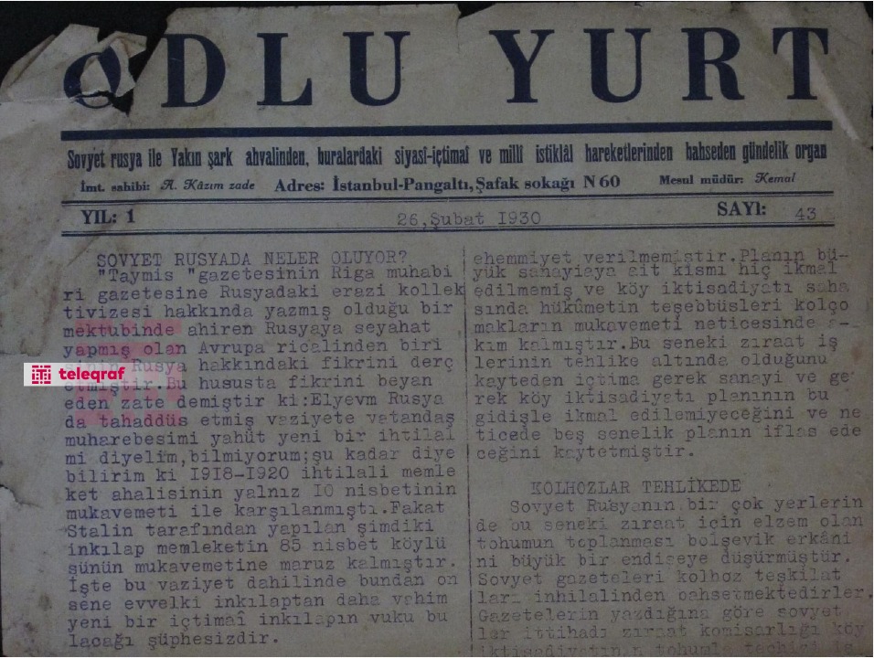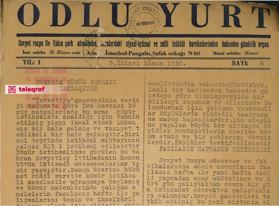 Türkiyə arxivlərində araşdırma apararkən “Odlu yurd” bülleteninin ilk sayını əldə etdik. Bülletenin ilk sayı 28 noyabr 1929-cu ildə İstanbulda çıxıb. Ünvanı bu şəkildə qeyd edilib: Panqaltı, Şəfəq küçəsi 60. Bülletenin imtiyaz sahibi Cümhuriyyət deputatlarından Abbasqulu Kazımzadə, məsul müdiri isə mühacir tələbələrdən Kamal Qənizadə olub.