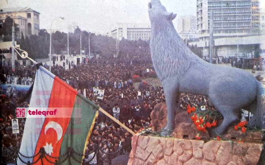Günortaya yaxın “Azərnəşr”ə tərəf getdik. Monolitə çatanda Nizaminin heykəli tərəfdən bir qrup adamın yuxarı qalxdığını gördük. Mən tez maşına minib “Nizami” metrosunun yanında yerləşən mənzilinə getdim. Bayrağı götürüb geri qayıtdım. Avtomobili monolitin qabağında saxlayıb salondan bayrağı çıxartdım. Bayaqkı adamlar artıq XTİ ilə Akademiya arasında idi. Ağayar orada məni gözləyirdi. “Yaşarın qrupu” dediyim və sonralar “Vətən ocağı” adlandıqlarını öyrəndiyim qrupun da əlində kiçik bir bayraq var idi. Biz Ağayarla əlimizdə bayraq küçə ilə yuxarı qalxmağa başladıq. Bu bayraq çıxandan sonra küçə sanki təlatümə gəldi. Adamlar haradan belə çoxaldı, bilmədim. Bir azdan bayrağı cavanlara verdim. Nümayiş iştirakçıları MK-nın qarşısına gəldilər. Gənclər iri bayrağı dalğalandırır, küçə boyu onu öpməkdən doymayan camaat, hətta tribunada da öpürdülər...”