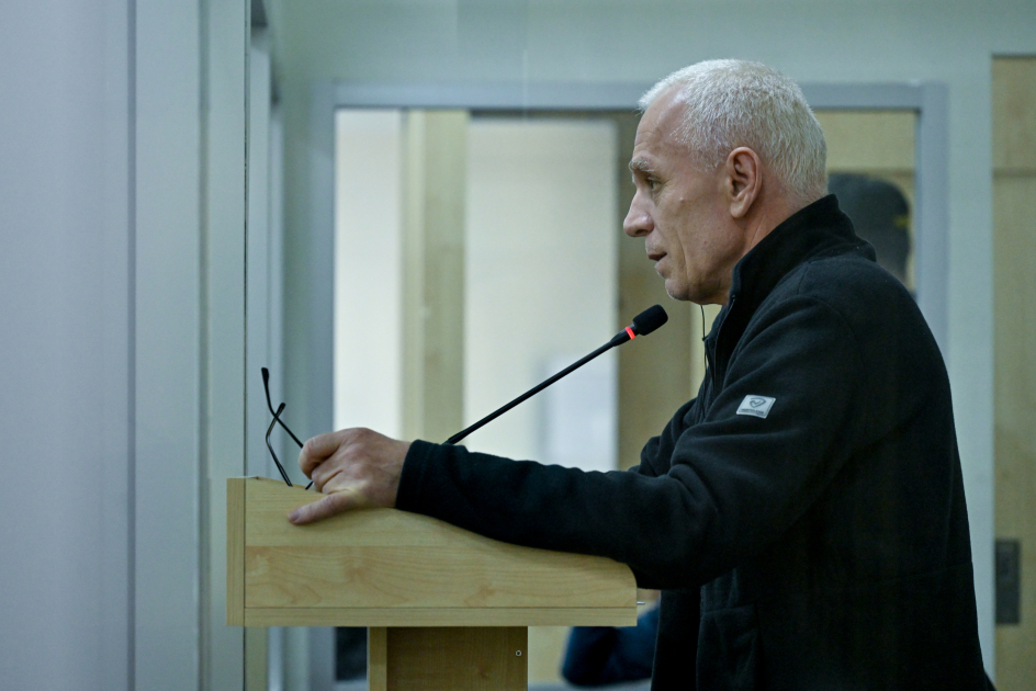 Ardınca təqsirləndirilən şəxs Levon Mnatsakanyan Baş Prokurorluğun Dövlət ittihamının müdafiəsi üzrə idarəsinin şöbə rəisi Nəsir Bayramovun suallarını cavablandırıb. O, 2015-2018-ci illərdə Azərbaycanın vaxtilə işğal altında olmuş ərazilərində qondarma rejimin “müdafiə ordusunun komandanı” vəzifəsini, buna qədər isə hərbi sahədə bir sıra vəzifələr tutduğunu təsdiqləyib. O, qondarma rejimin “ordusu”nda xidmətə 1992-ci ilin sentyabrında başladığını bildirərək qeyd edib: “Motoatıcı taborun komandirinin müavini vəzifəsində başladım”.