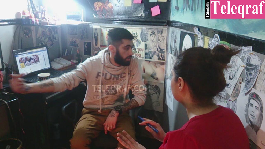 Biz də döymə prosesini müşahidə etmək üçün şəhərdəki tatu salonlarından birinə baş çəkdik. Salonda ilk diqqətimizi divarlara vurulan müxtəlif tatu növlərinin şəkilləri çəkdi. Daha sonra 10 ildir professional döymə ustası işləyən Tuncay Hasanoğlu ilə söhbətləşdik.