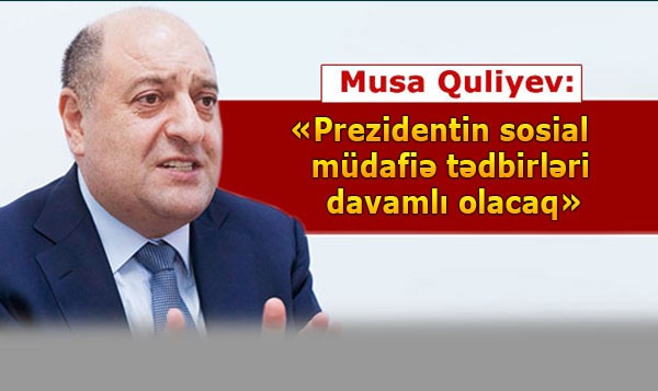 Millət vəkili Musa Quliyev bildirir ki, dünya bazarında neftin qiymətinin aşağı düşməsinə, ümumdünya maliyyə böhranının genişlənməsinə baxmayaraq Azərbaycan dövləti əhalinin sosial müdafiəsini həmişə öz daxili siyasətinin prioritet istiqaməti kimi görür və əhalinin sosial müdafiəsi həmişə diqqət mərkəzində qalacaq.