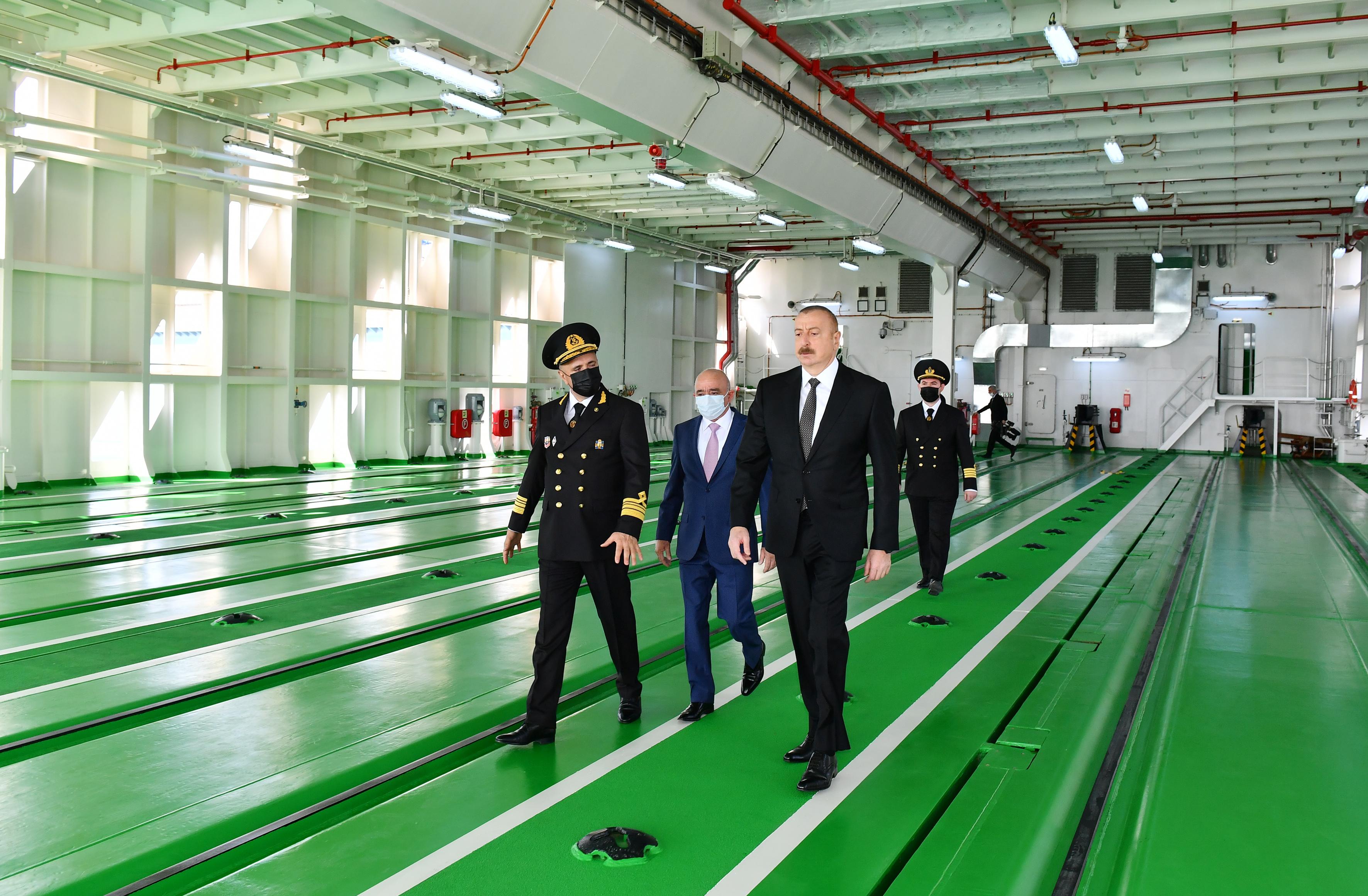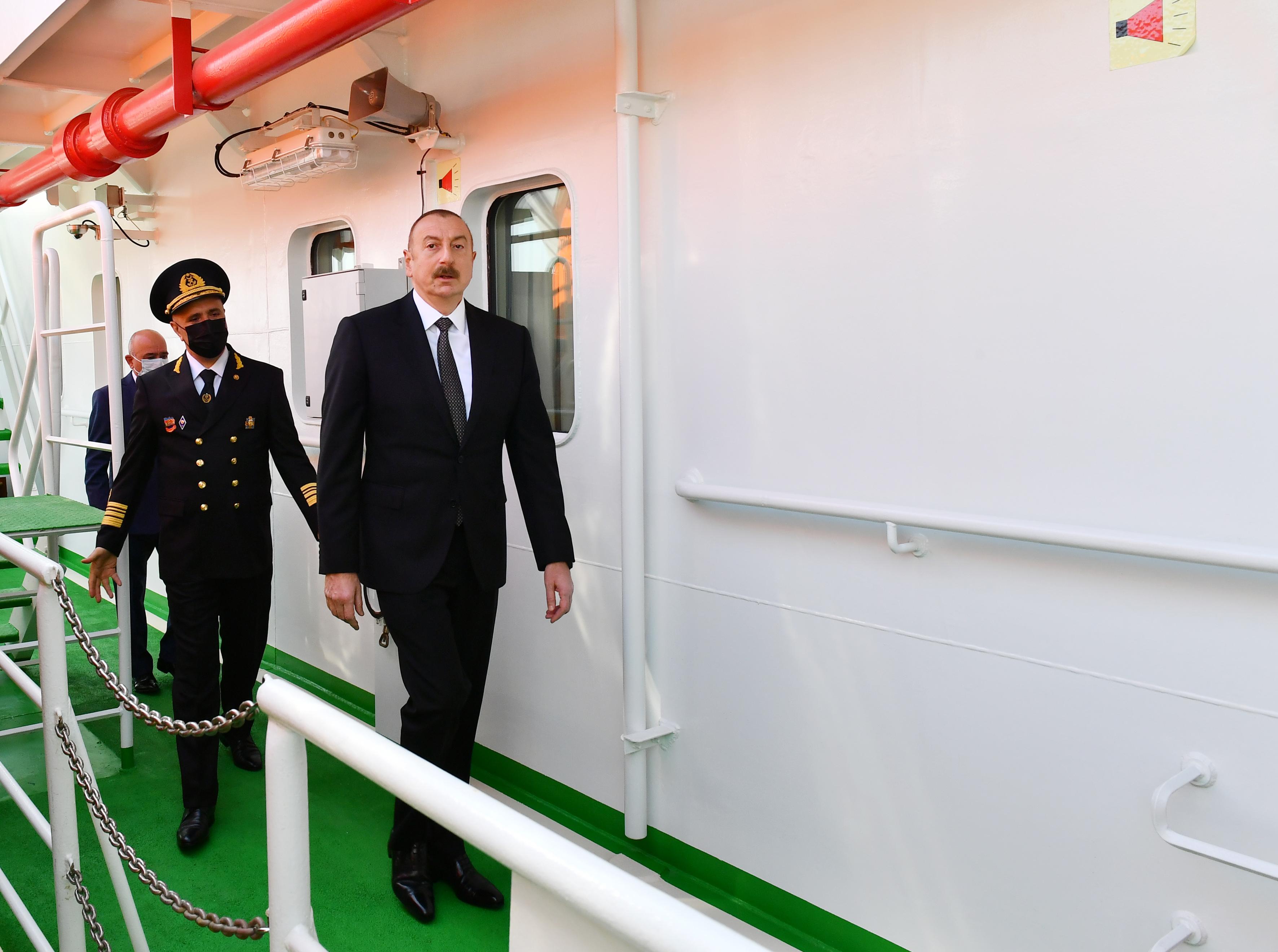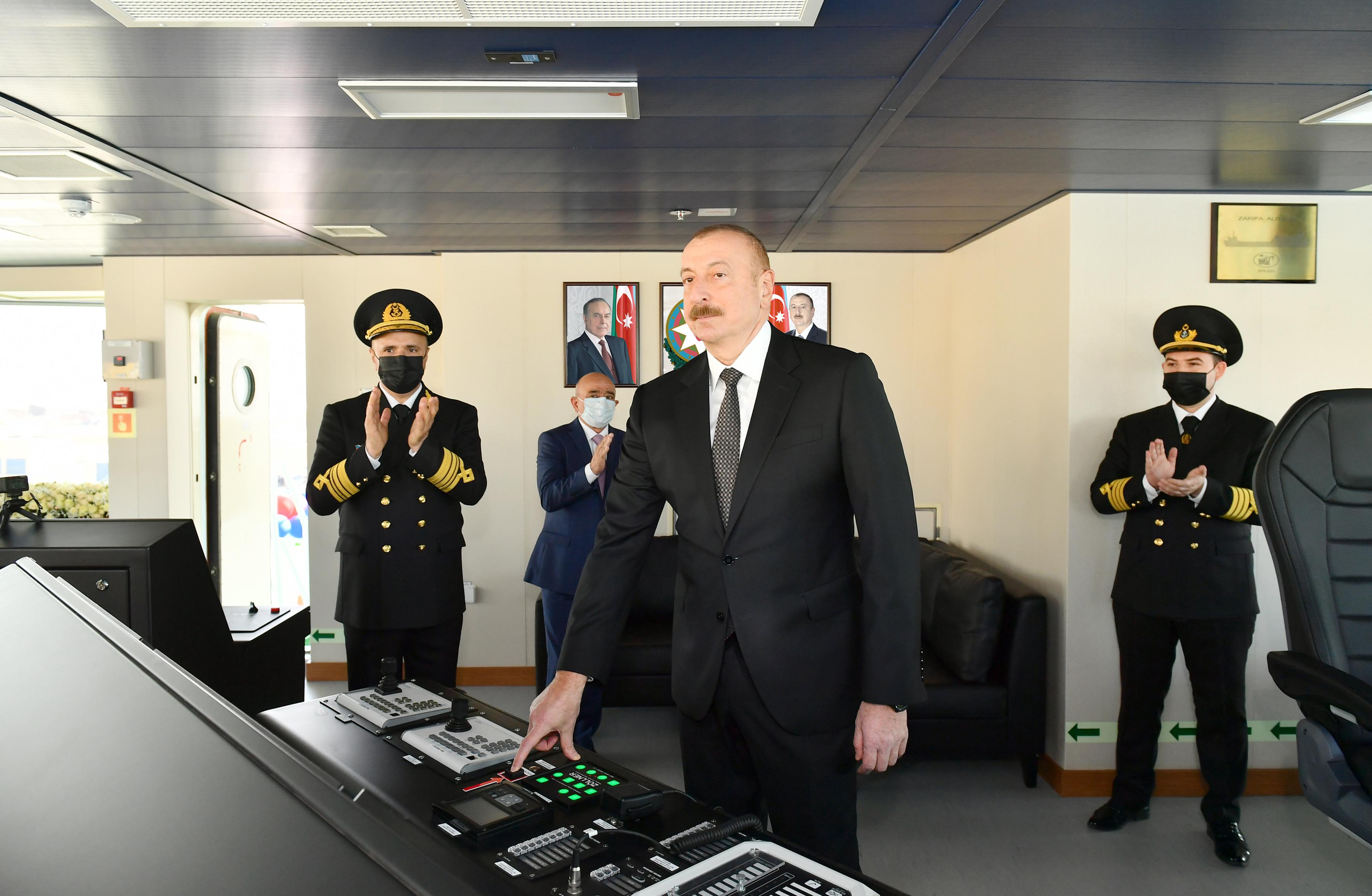 Gəmi-bərə ilə tanış olan Prezident İlham Əliyev daha sonra onun işə salınmasını bildirən düyməni basıb.