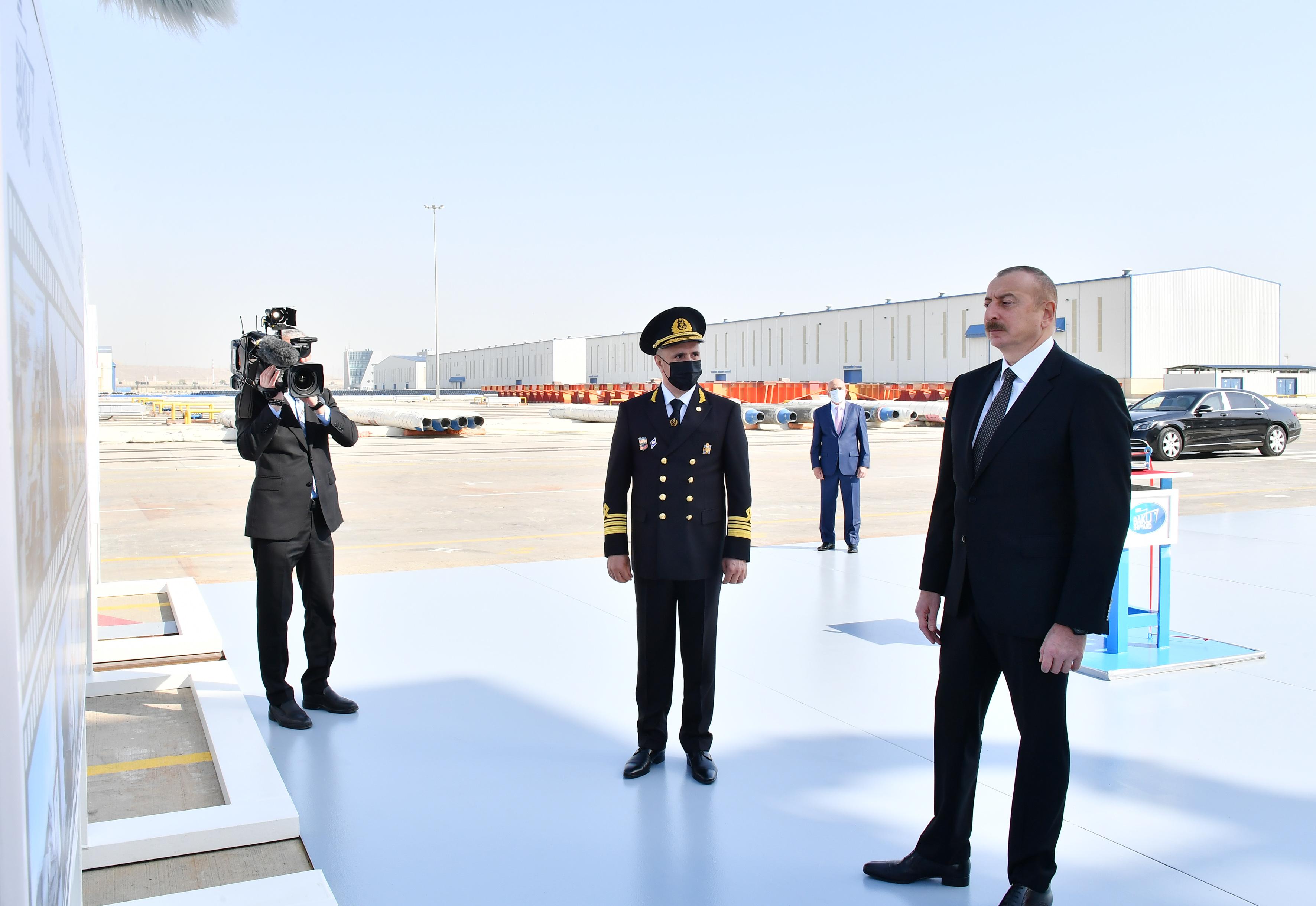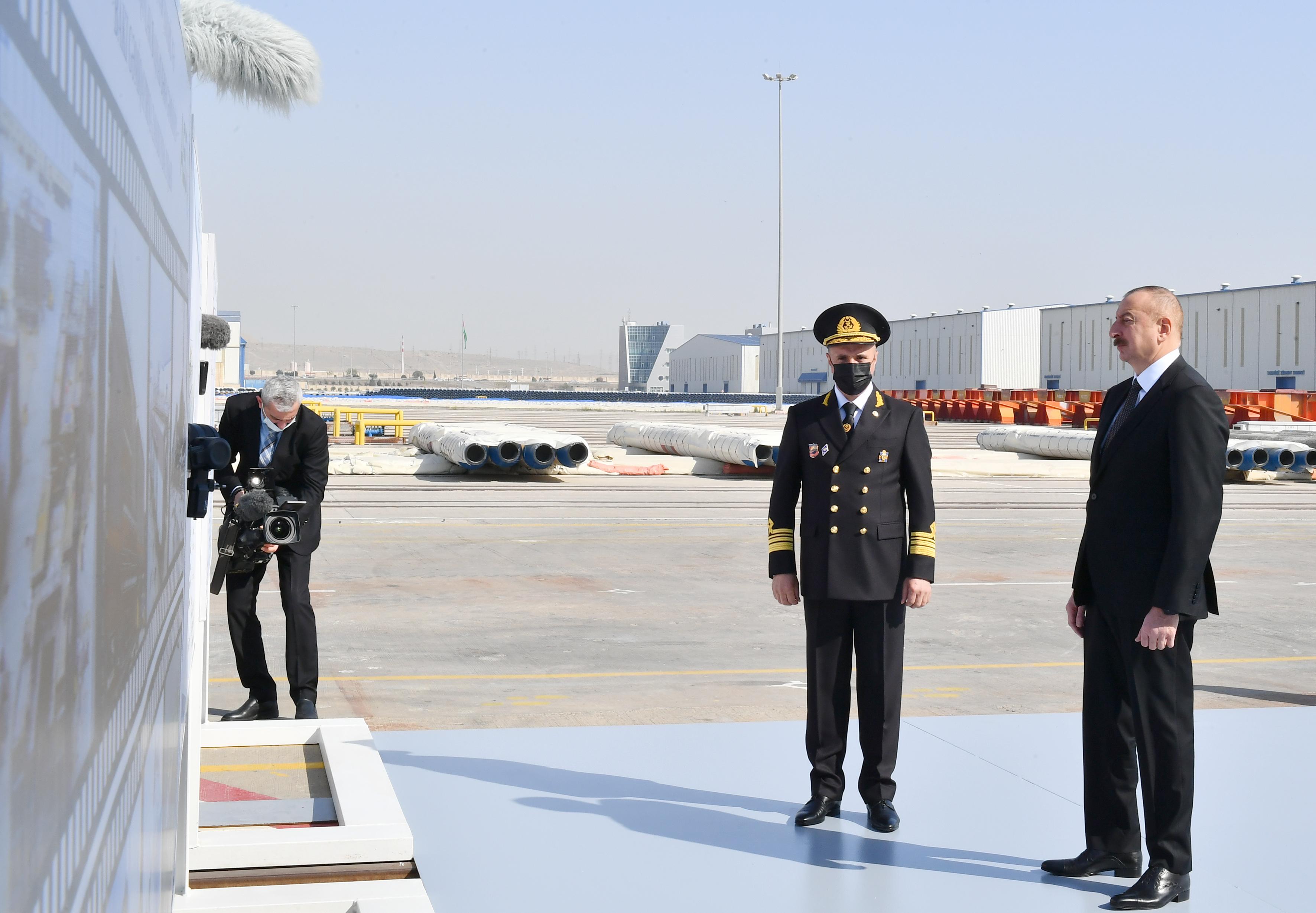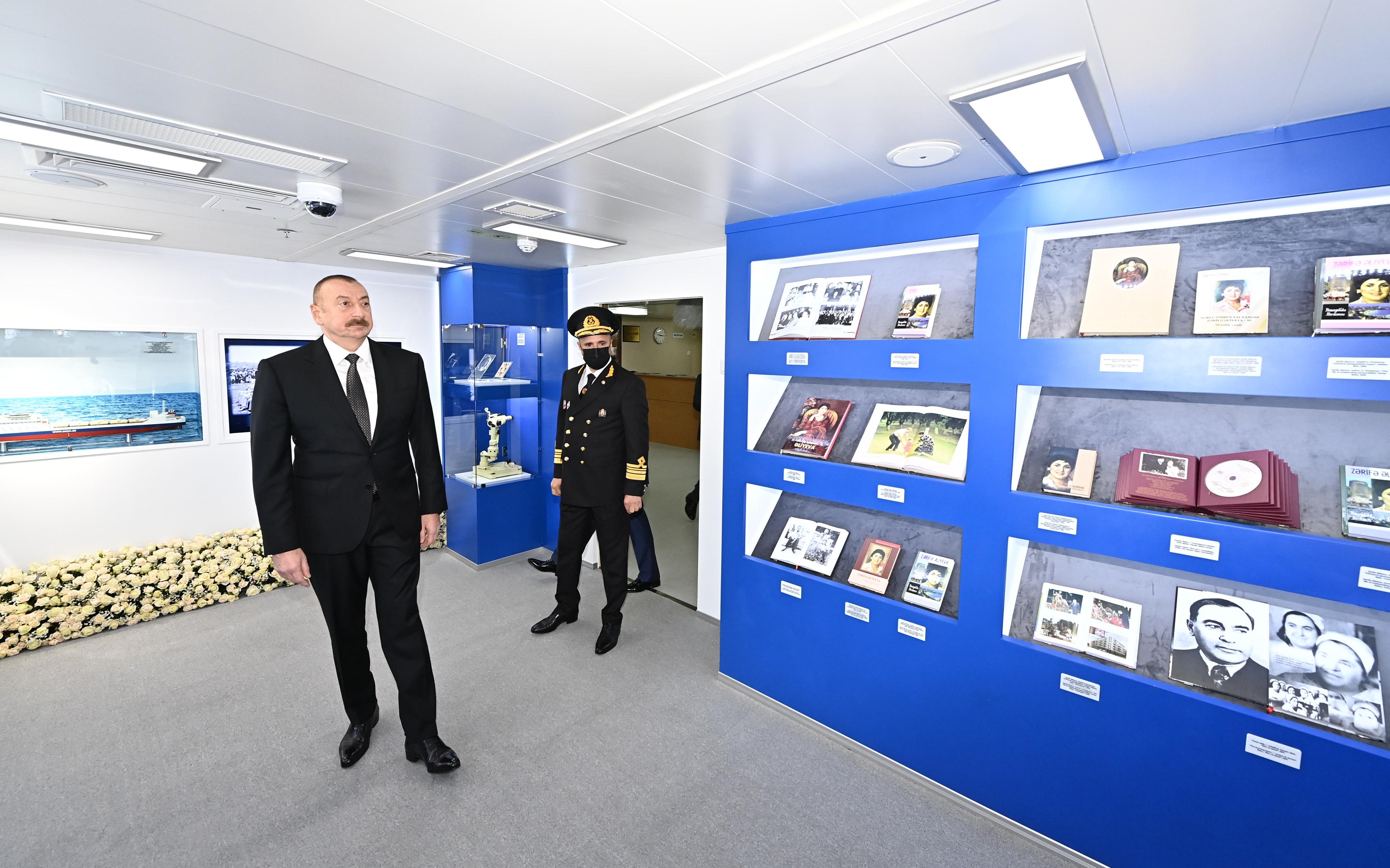 Gəmi-bərə ilə tanış olan Prezident İlham Əliyev daha sonra onun işə salınmasını bildirən düyməni basıb.