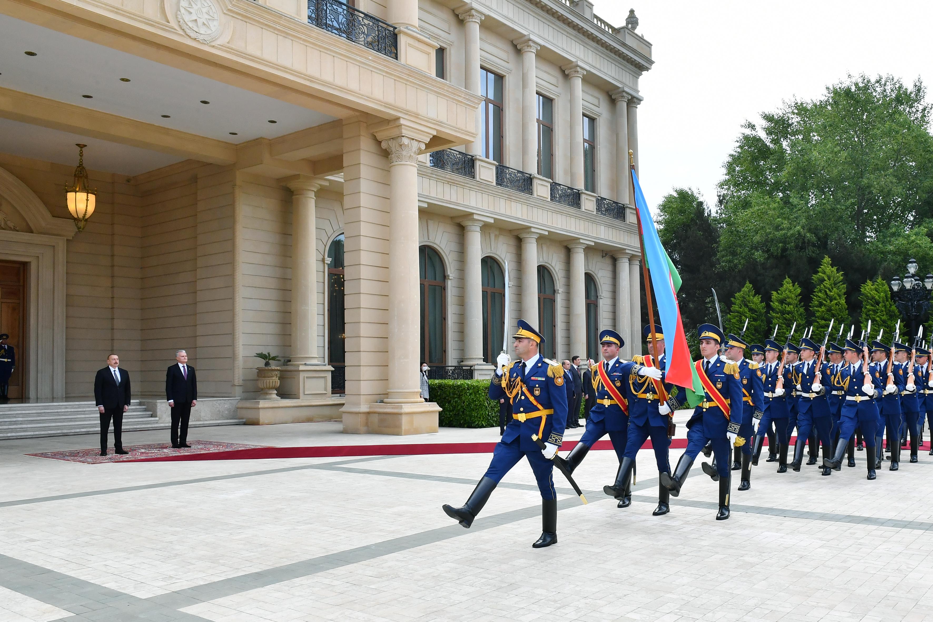 Fəxri qarovul dəstəsi hərbi marşın sədaları altında Azərbaycan Prezidenti İlham Əliyevin və Litva Prezidenti Gitanas Nausedanın qarşısından keçib.