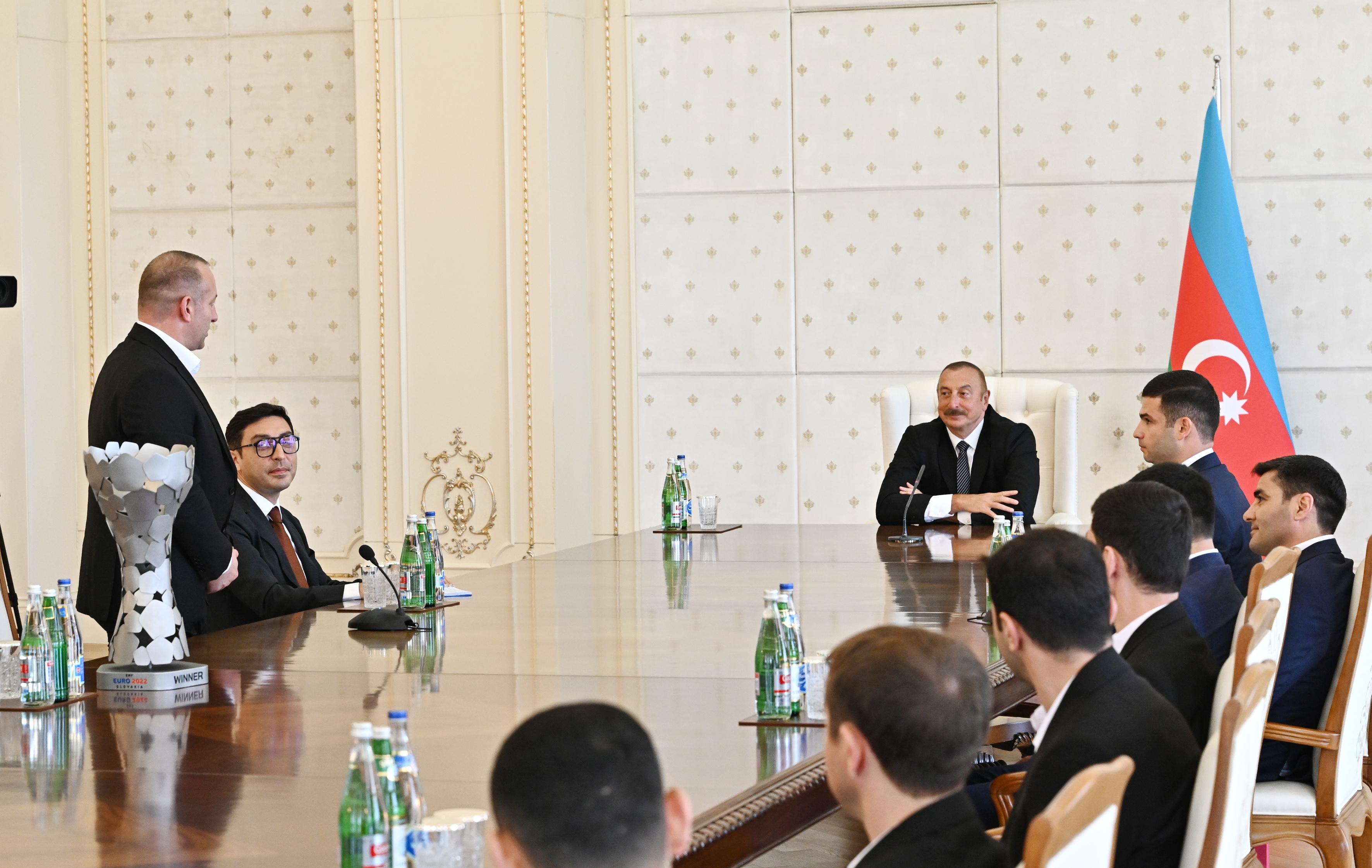 İyunun 14-də Azərbaycan Respublikasının Prezidenti İlham Əliyev Slovakiyada keçirilmiş minifutbol üzrə Avropa çempionatının qalibi olan milli komandamızın üzvlərini qəbul edib.