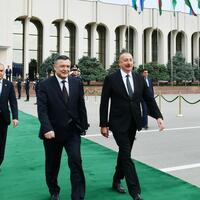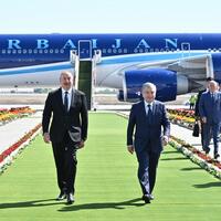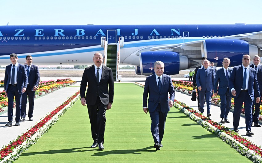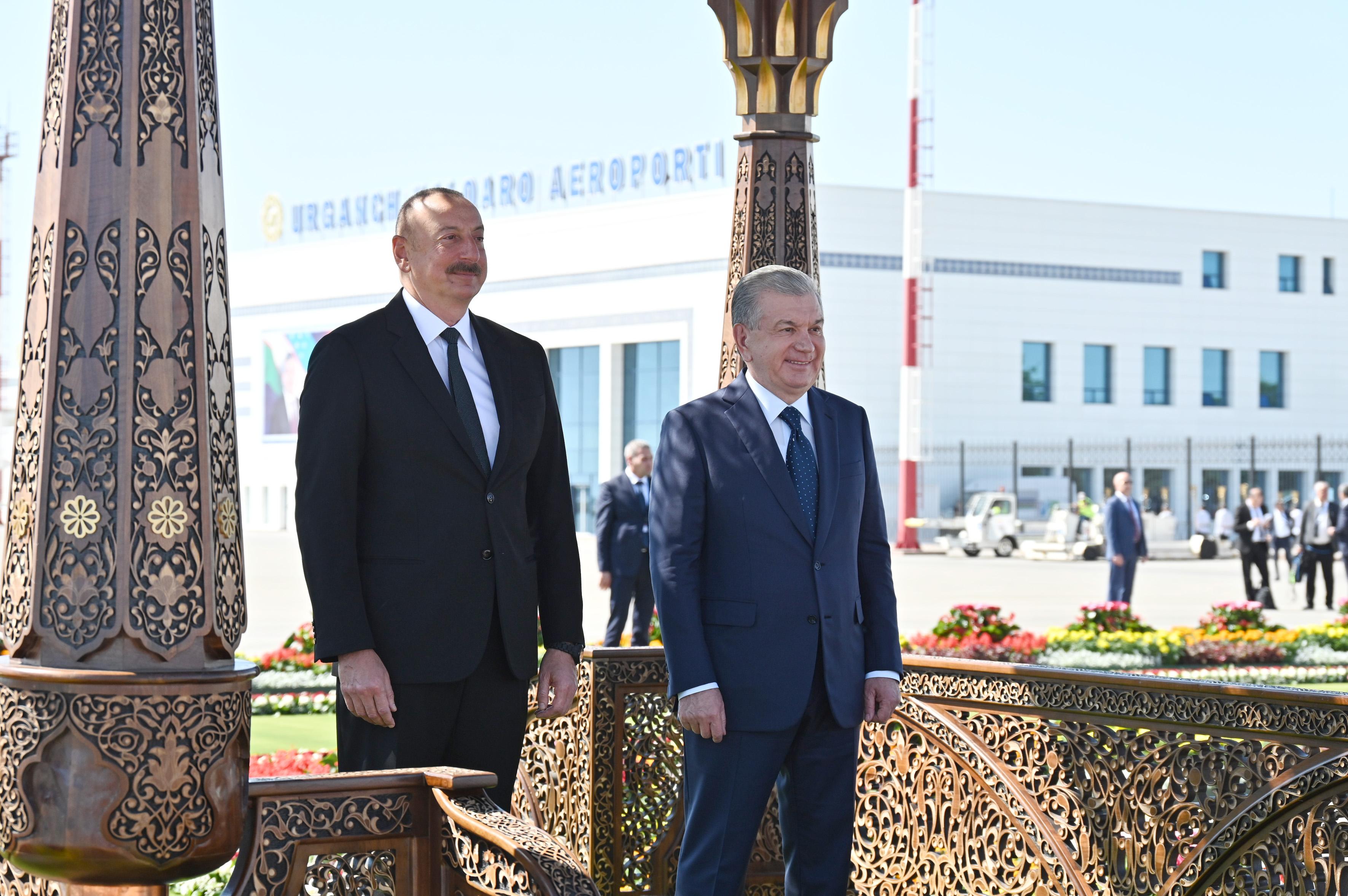 Teleqraf.com xəbər verir ki, hər iki ölkənin dövlət bayraqlarının dalğalandığı Ürgənc şəhərinin Beynəlxalq Hava Limanında Prezident İlham Əliyevi Özbəkistan Respublikasının Prezidenti Şavkat Mirziyoyev qarşıladı.