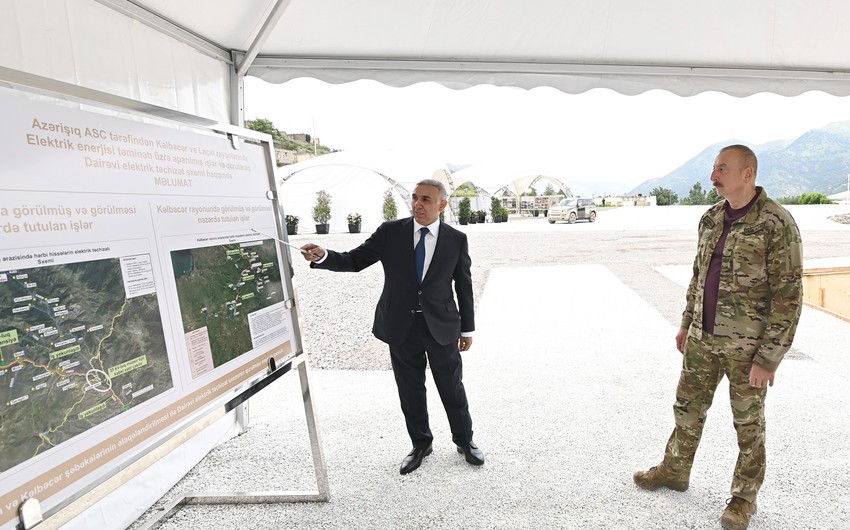Dövlətimizin başçısına məlumat verilib ki, Kəlbəcər rayonu ərazisində xüsusi dövlət əhəmiyyətli obyektlərin və hərbi hissələrin elektrik enerjisi ilə təmin olunması istiqamətində genişmiqyaslı işlər bu gün də davam etdirilir. İşlər çərçivəsində mənbə kimi Gəncə şəhərində yerləşən “Gəncə-2” yarımstansiyasından Daşkəsənə 110 kV-luq elektrik verilişi xətti çəkilib. Kəlbəcərin dayanıqlı və keyfiyyətli elektrik enerjisi ilə təminatında bu xətt müstəsna rol oynayacaq. Bu, Azərbaycanda ən mürəkkəb və çətin relyeflərdən keçən yüksəkgərginlikli xətdir. Dağlarda texnikanın rahat hərəkət etməsi üçün əvvəlcə yol inşa edilib.