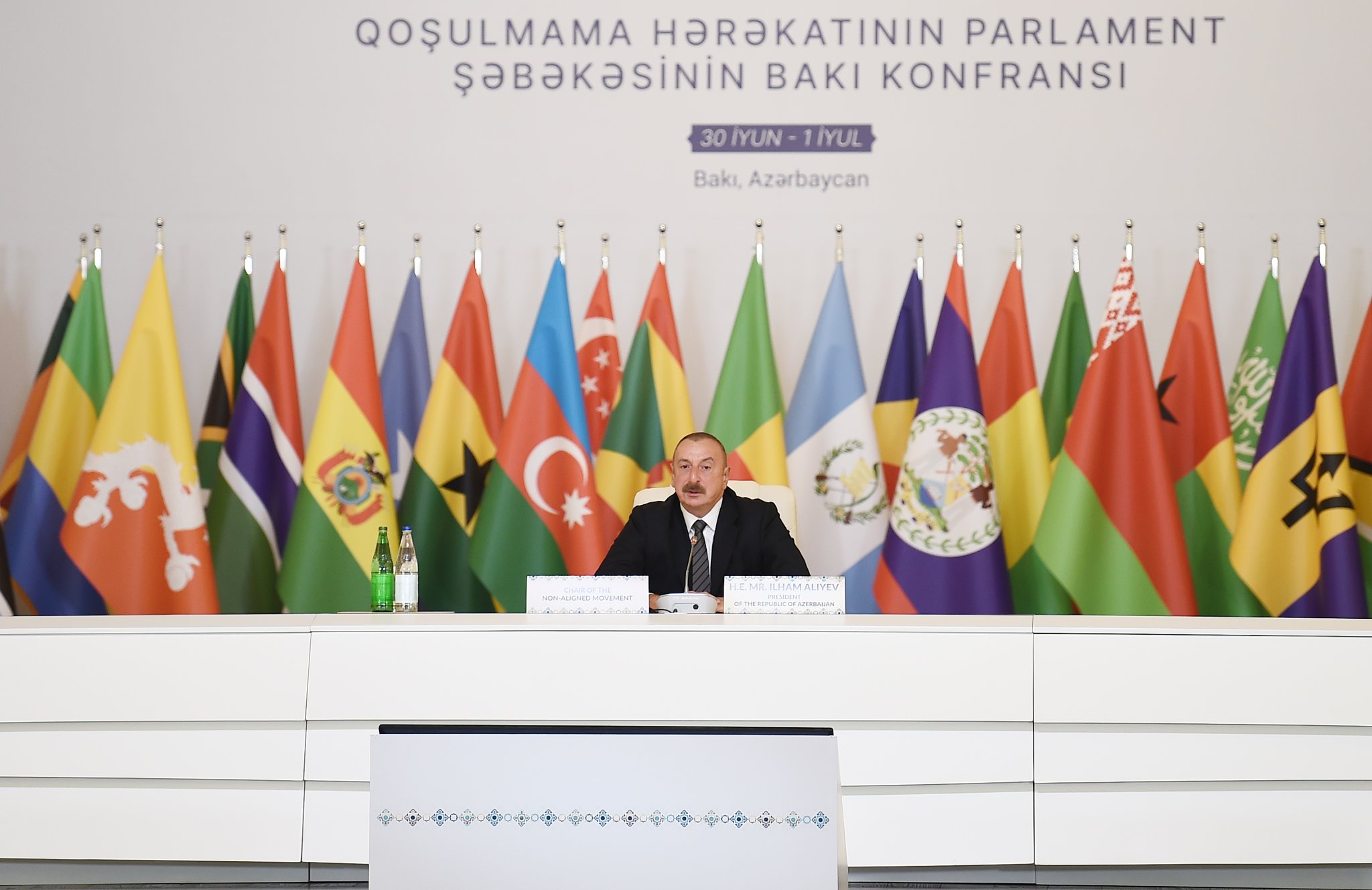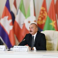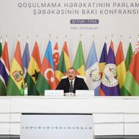 Beləliklə, Azərbaycanın Qoşulmama Hərəkatının sədri qismində irəli sürdüyü təşəbbüslər həmrəyliyi və qarşılıqlı dəstəyi möhkəmləndirməyə, təsisatımızın institusional inkişafına və bəlkə də müəyyən mərhələdə onu təşkilata çevrilməsinə yönəlib. Bilirəm ki, Qoşulmama Hərəkatının tarixində bununla bağlı müzakirələr olub və bəlkə də bu müzakirələri yenidən başlamağın vaxtı çatıb. Çünki bu gün biz dünyada qlobal qütbləşmənin, müharibənin, münaqişənin, proqnozlaşdırıla bilinməyən vəziyyətin, ərzaq, enerji və humanitar böhranların şahidi oluruq. Hesab edirəm ki, Qoşulmama Hərəkatı təkcə ölkələr üçün maraqlarını müdafiə etmək və bir-birini dəstəkləmək platforması deyil, beynəlxalq arenada daha fəal rol oynamaq üçün platforma da ola bilər. Azərbaycan olaraq biz bunu görmək arzusundayıq və ümid edirəm ki, bizim hörmətli qonaqlarımız, Qoşulmama Hərəkatına üzv ölkələrin parlamentlərinin nümayəndələri bu işə töhfə verəcək və əlbəttə ki, mən də Qoşulmama Hərəkatına üzv ölkələrin dövlət və hökumət başçıları ilə məsləhətləşmələrimi davam etdirəcəm.