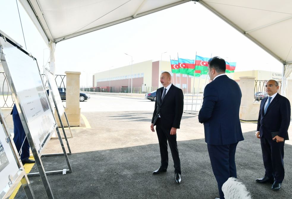 Teleqraf.com xəbər verir ki, dövlət başçısı əvvəlcə Sumqayıt Kimya Sənaye Parkında yeni istehsal müəssisələrinin açılış və təməlqoyma mərasimlərində iştirak edib.