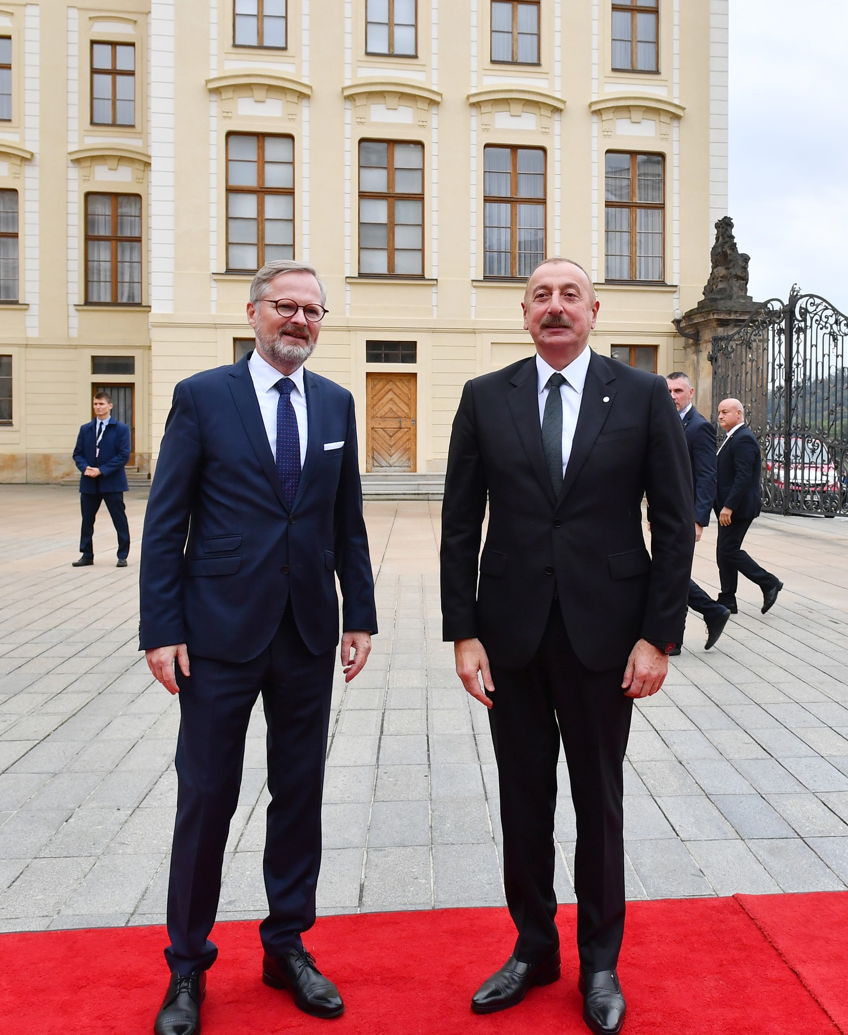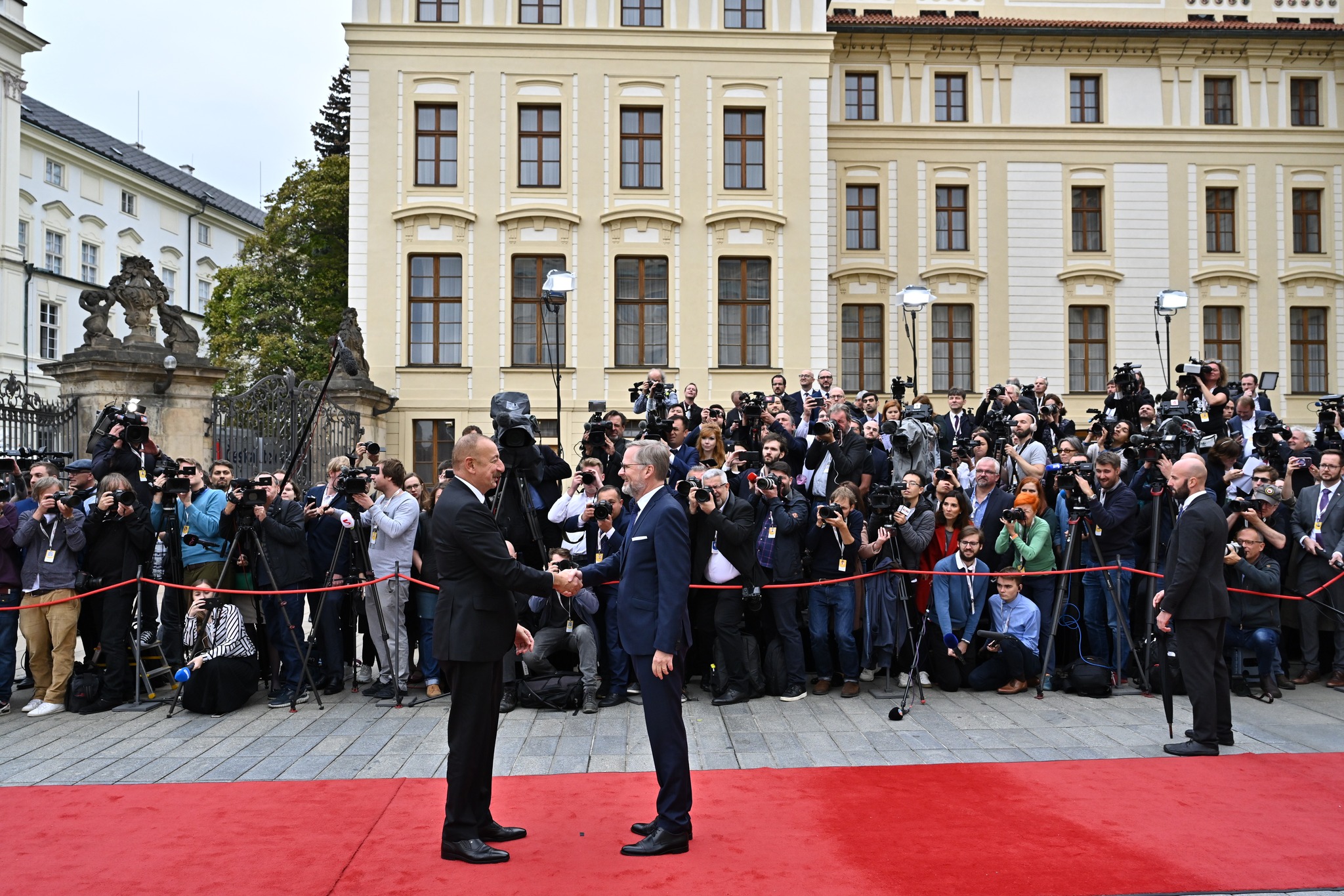 Çex Respublikasının Baş naziri Petr Fiala Azərbaycan Prezidenti İlham Əliyevi, Zirvə Toplantısında iştirak edən digər dövlət və hökumət başçılarını qarşıladı.