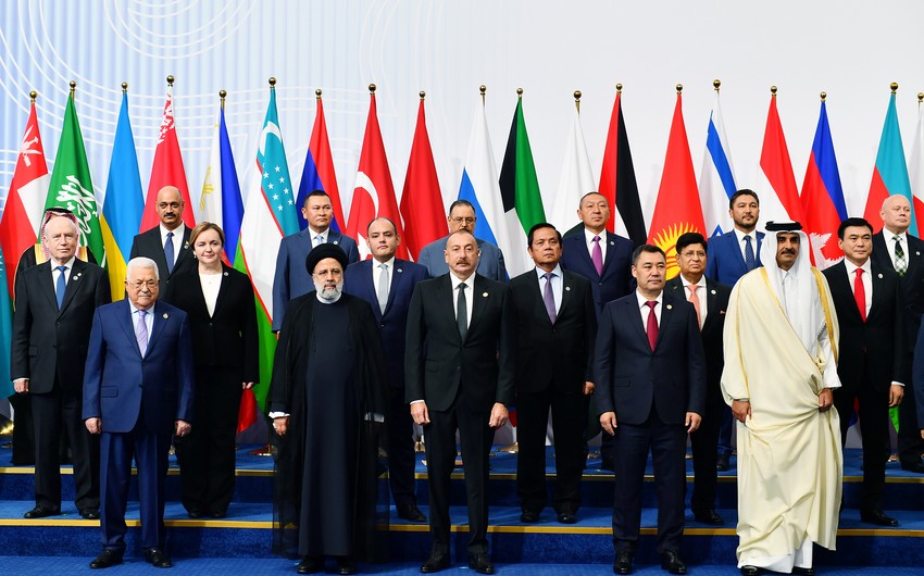 Teleqraf.com xəbər verir ki, tədbirdə Azərbaycan, İraq, İran, Qazaxıstan, Qətər, Qırğızıstan, Fələstin, Rusiya, Tacikistan, Türkiyə, Özbəkistan, Belarus dövlət başçıları, eyni zamanda Vyetnamın vitse-prezidenti və Çin rəhbərinin müavini iştirak edir.