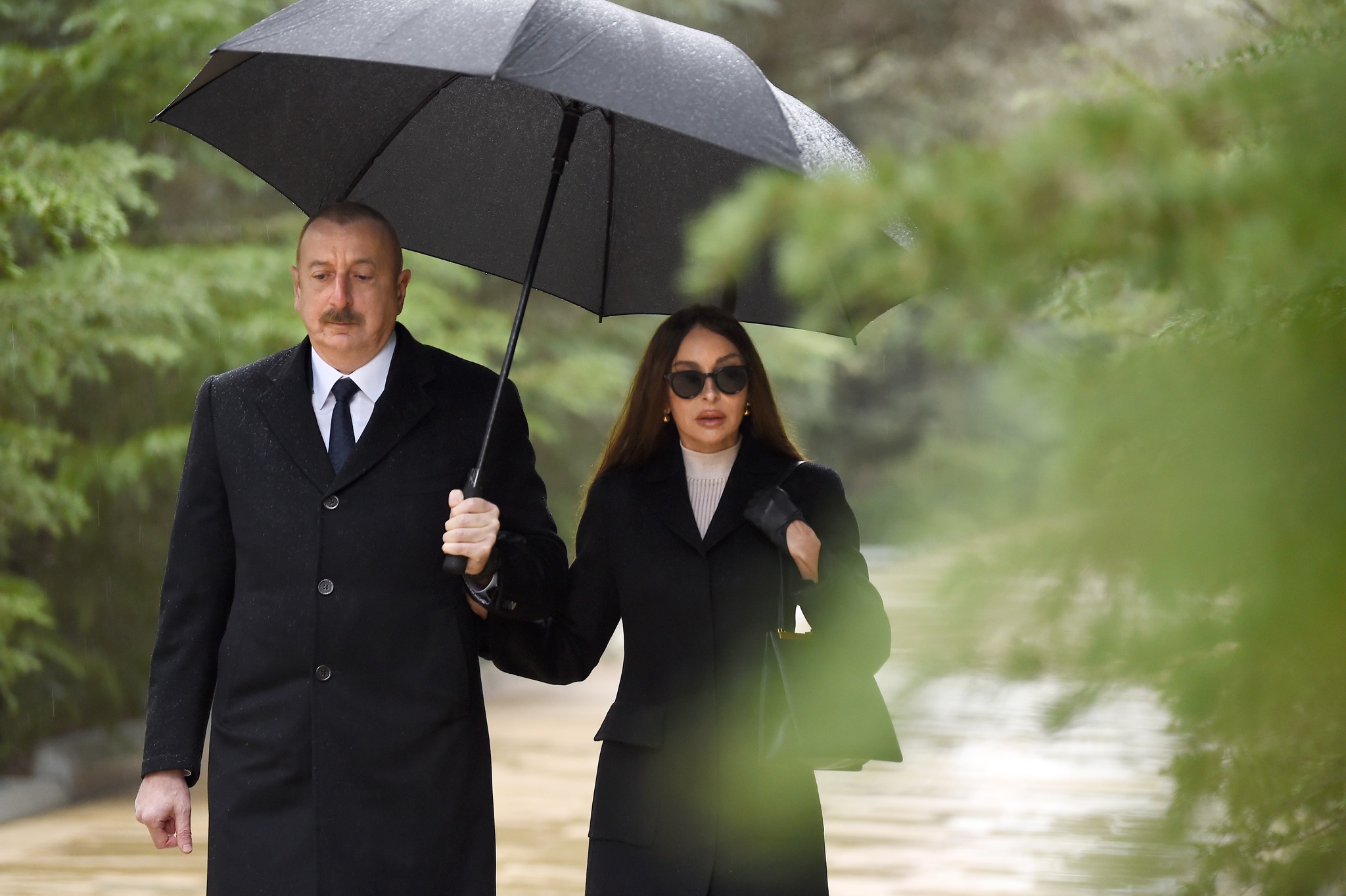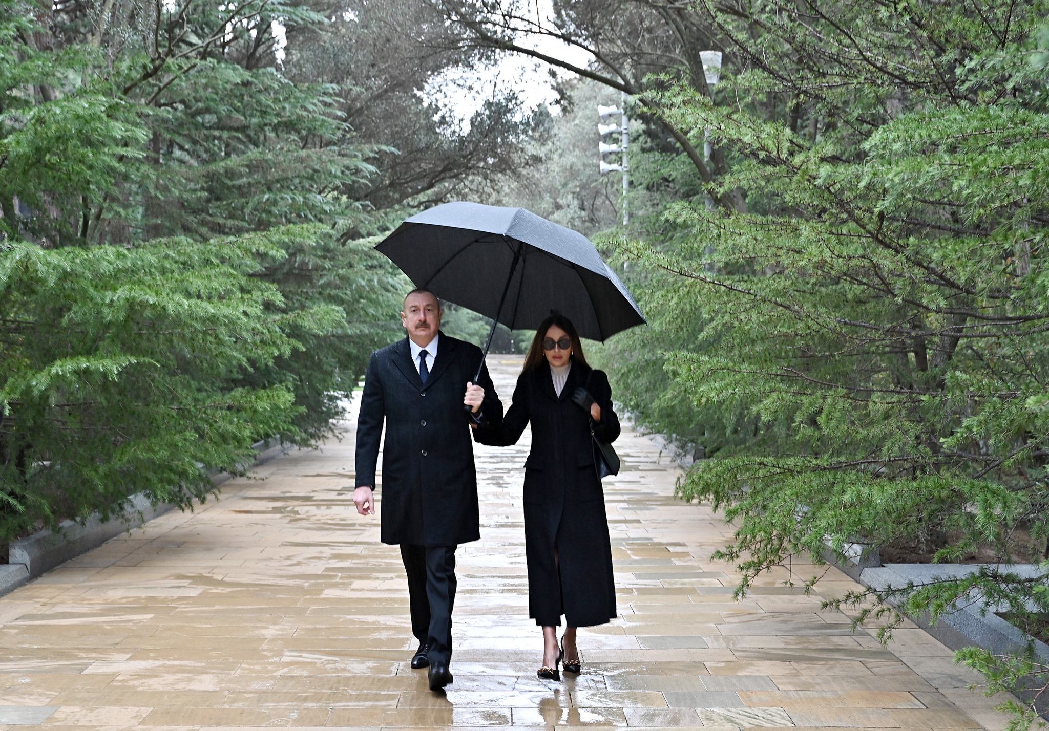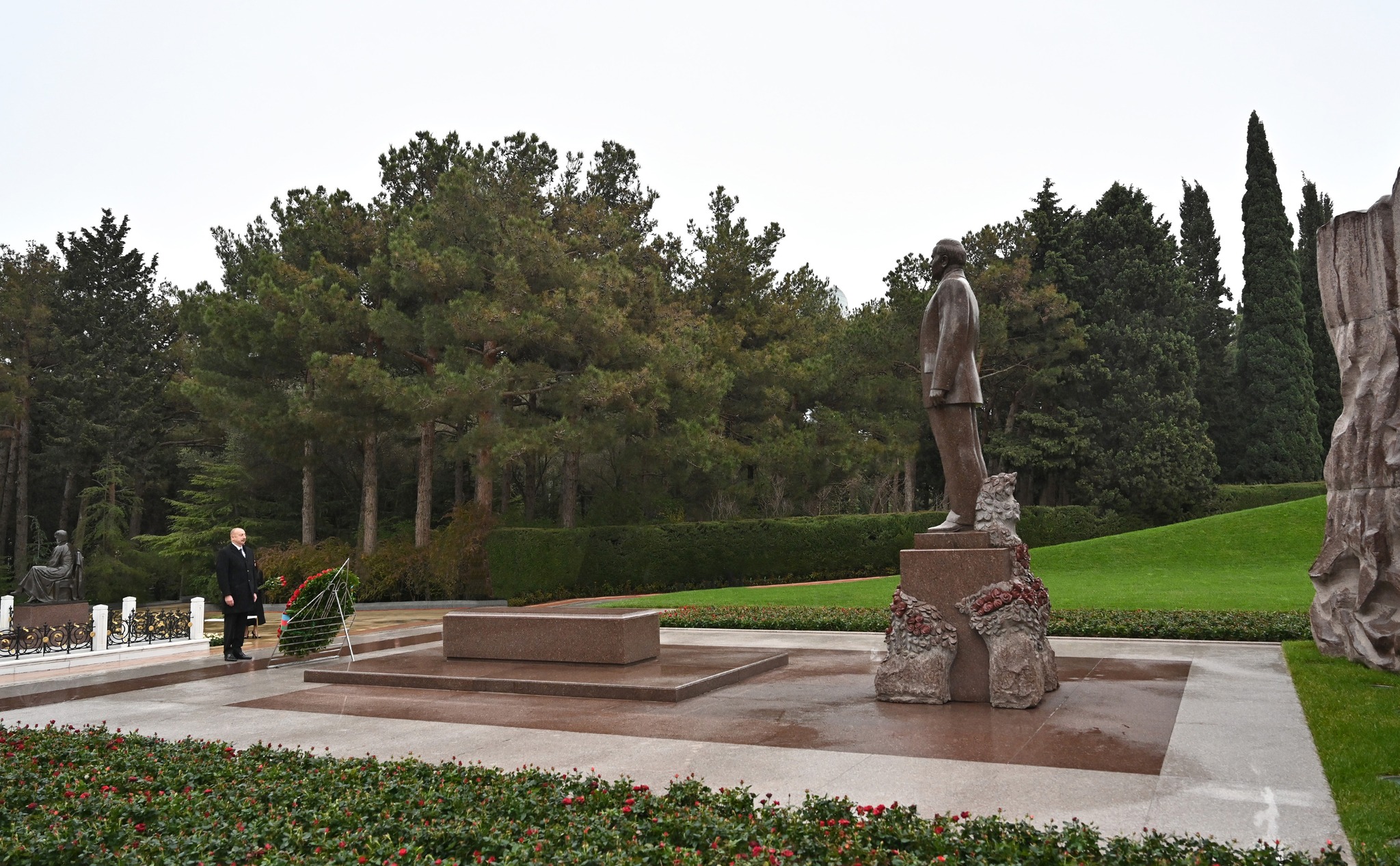 Prezident İlham Əliyev Ulu Öndərin məzarı önünə əklil qoyub.
