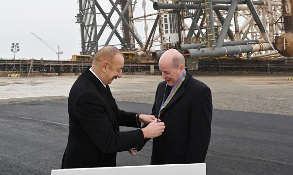 Ölkə başçısı deyib ki, o, buna həqiqətən layiqdir: “Bu, sizin Azərbaycanın neft-qaz sənayesinin inkişafına verdiyiniz mühüm töhfəniz, dostluğunuz və Azərbaycanın yaxşı sakini olduğunuza görədir. Siz demək olar ki, vətəndaşımızsınız və xalqımızın təməl ehtiyaclarını anlayırsınız. Bizimlə Şuşaya səfər etdiyinizə və bütün heyətinizin gördüyü işlərə görə sizi məmnuniyyətlə təltif etdim. Təltif sentyabrın 19-da olub, ancaq mən fürsət gözləyirdim və zənnimcə, bu gün əla gündür. Bu nəhəng qurğunun önündə sizə bu ordeni təqdim edirəm”.