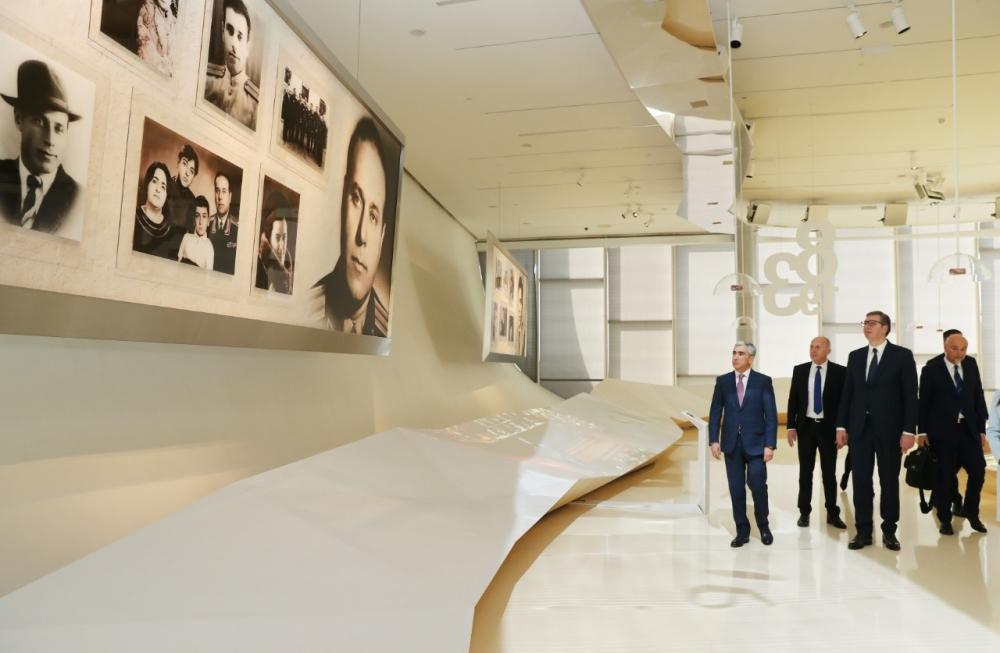 Mərkəzdə yaradılmış Heydər Əliyev Muzeyi Serbiya Prezidentinin böyük marağına səbəb olub. Ali qonağın diqqətinə çatdırılıb ki, Ümummilli Lider Heydər Əliyevin 90 illik yubileyi ərəfəsində açılmış bu muzeyin “Fotoşəkillərdə əks olunmuş həyat”, “Azərbaycanın ictimai-siyasi həyatı”, “Dövlətçilik, irs, nailiyyətlər” adlı bölmələrində Ulu Öndərin həm sovet dövründə, həm də ölkəmizin müstəqilliyi illərində fəaliyyət konsepsiyasının müxtəlif aspektləri virtual şəkildə təqdim olunur. Hər bir mövzu üzrə materiallar Azərbaycan və ingilis dillərində təqdim edilir.