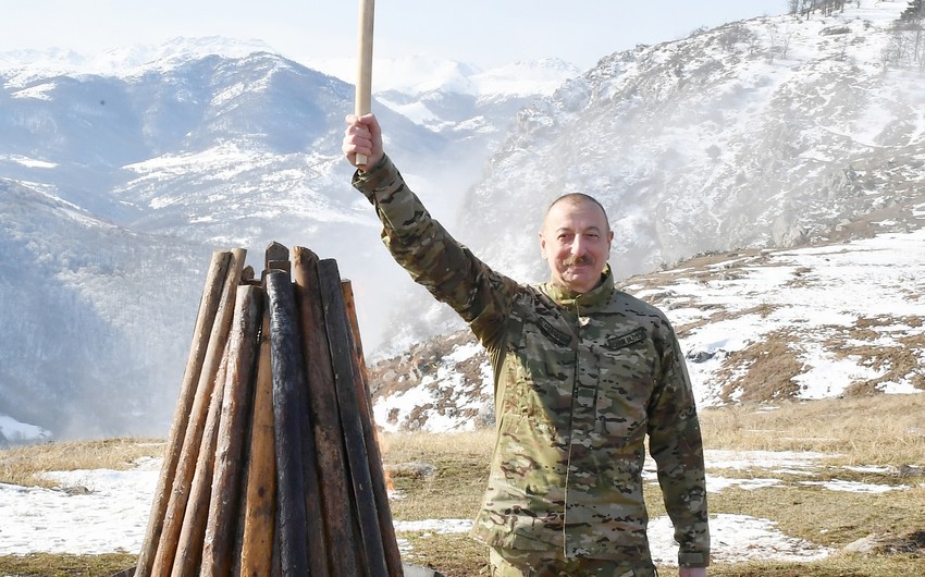 Azərbaycan Prezidenti İlham Əliyev Talış kəndinə gəlib, Novruz tonqalını alovlandırıb.