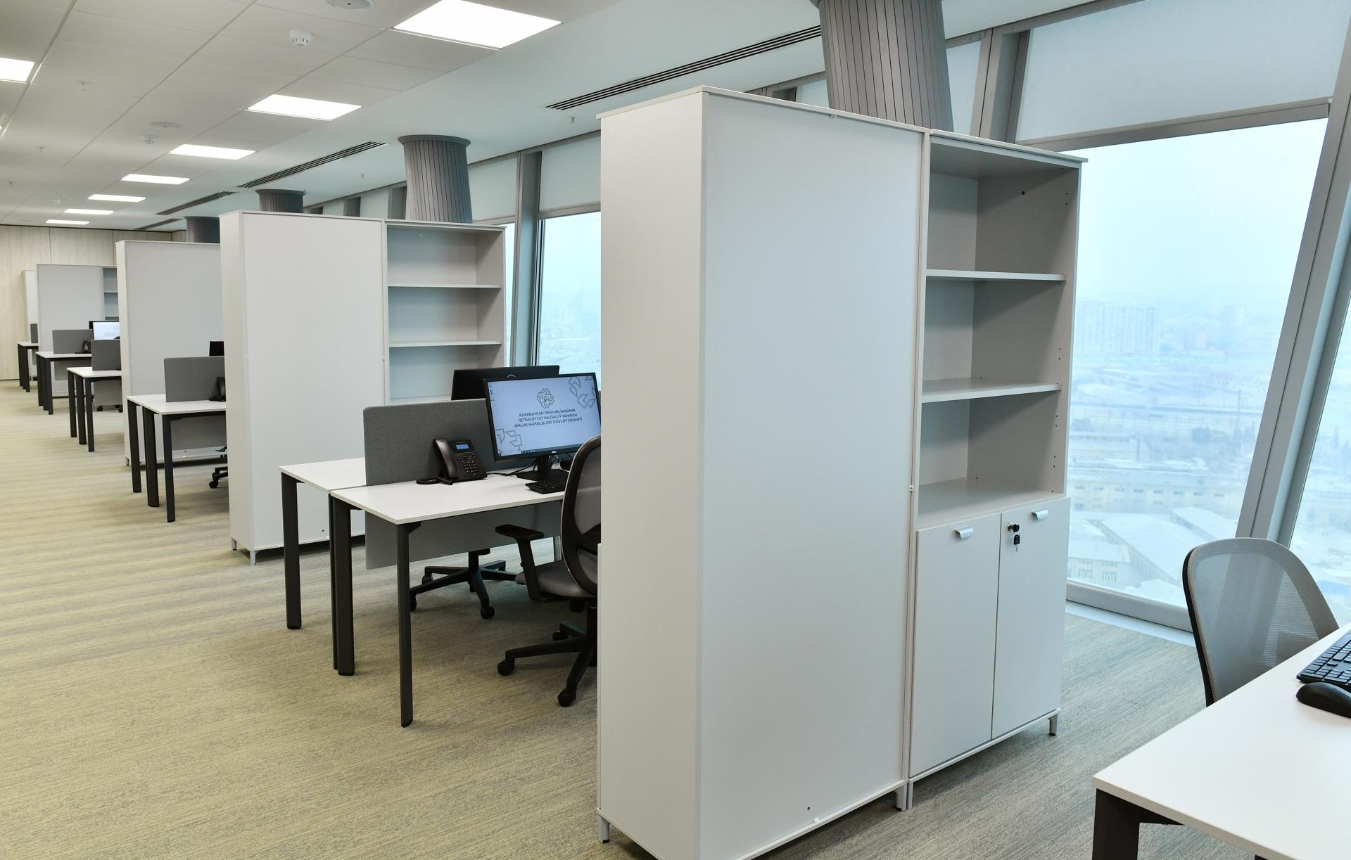 Binanın daha bir diqqətçəkən cəhəti isə yuxarıdan baxanda kürsü mərtəbəsinin Azərbaycanın xəritəsi formasında inşa edilməsi və şərq tərəfdən “Xəzər dənizi” dekorativ hovuzu ilə əhatə olunmasıdır. İşçi mərtəbələri 254 otaqdan ibarət olan binada 537 əməkdaşın fəaliyyəti üçün hər cür şərait yaradılıb. Binada müxtəlif tədbirlərin keçirilməsi üçün hər cür şəraitə malik və müasir multimedia vasitələri ilə təchiz olunmuş konfrans və iclas zalları, həmçinin müxtəlif təyinatlı iclas otaqları, yeməkxanalar var. Binadaxili mikroiqlimin təmin olunması, səmərəli enerji sərfiyyatının tənzimlənməsi, işıqlandırma, yanğınsöndürmə və təhlükəsizlik sistemlərinin idarə edilməsi, fövqəladə hallar zamanı mühəndis-texniki sistemlərin tənzimlənməsi üçün İdarəetmə Mərkəzi qurulub. Göründüyü kimi, yeni binada tikintidə müasir çağırışların paytaxtımızın infrastrukturuna inteqrasiyası ilə yanaşı, işçi heyətin daha səmərəli çalışması üçün hər cür şərait yaradılıb.