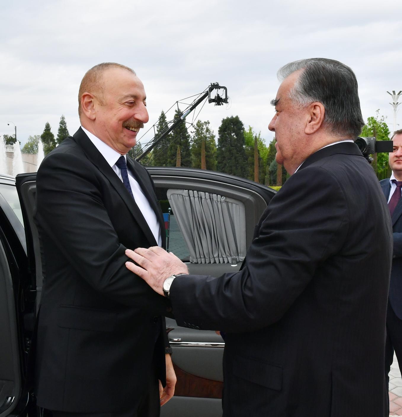 Tacikistan Respublikasının Prezidenti Emoməli Rəhmon Azərbaycan Respublikasının Prezidenti İlham Əliyevi qarşılayıb.