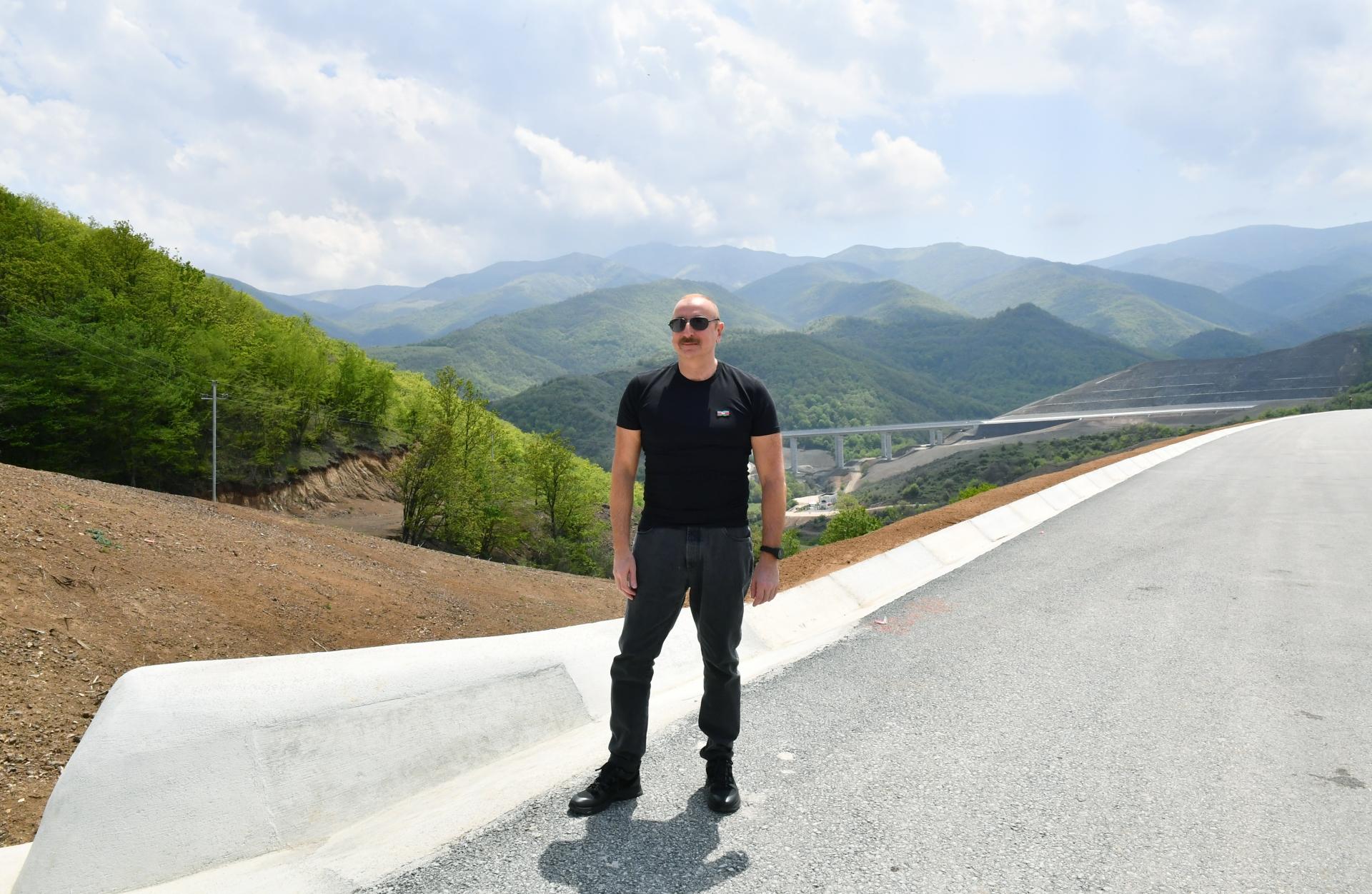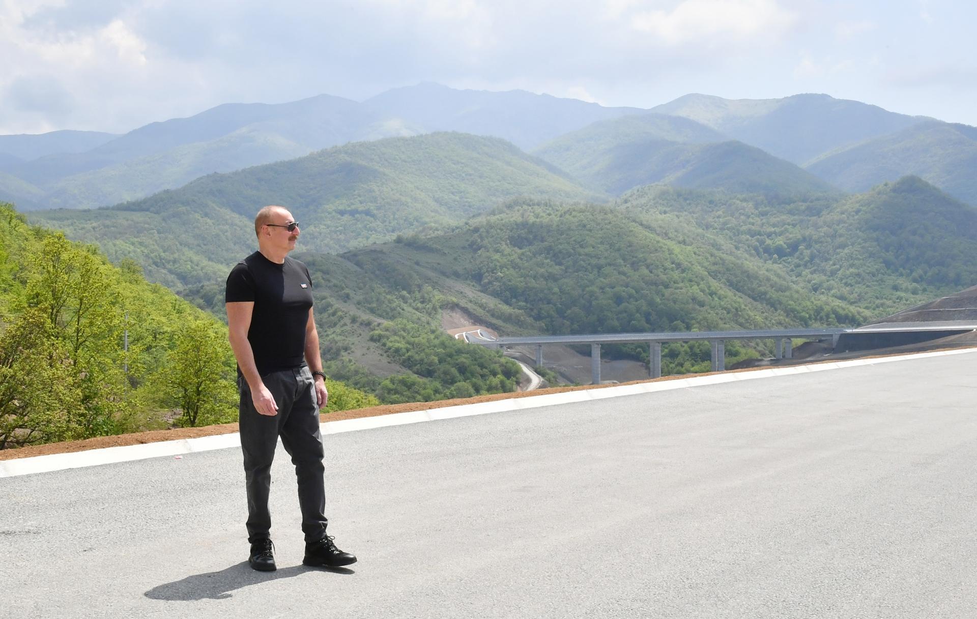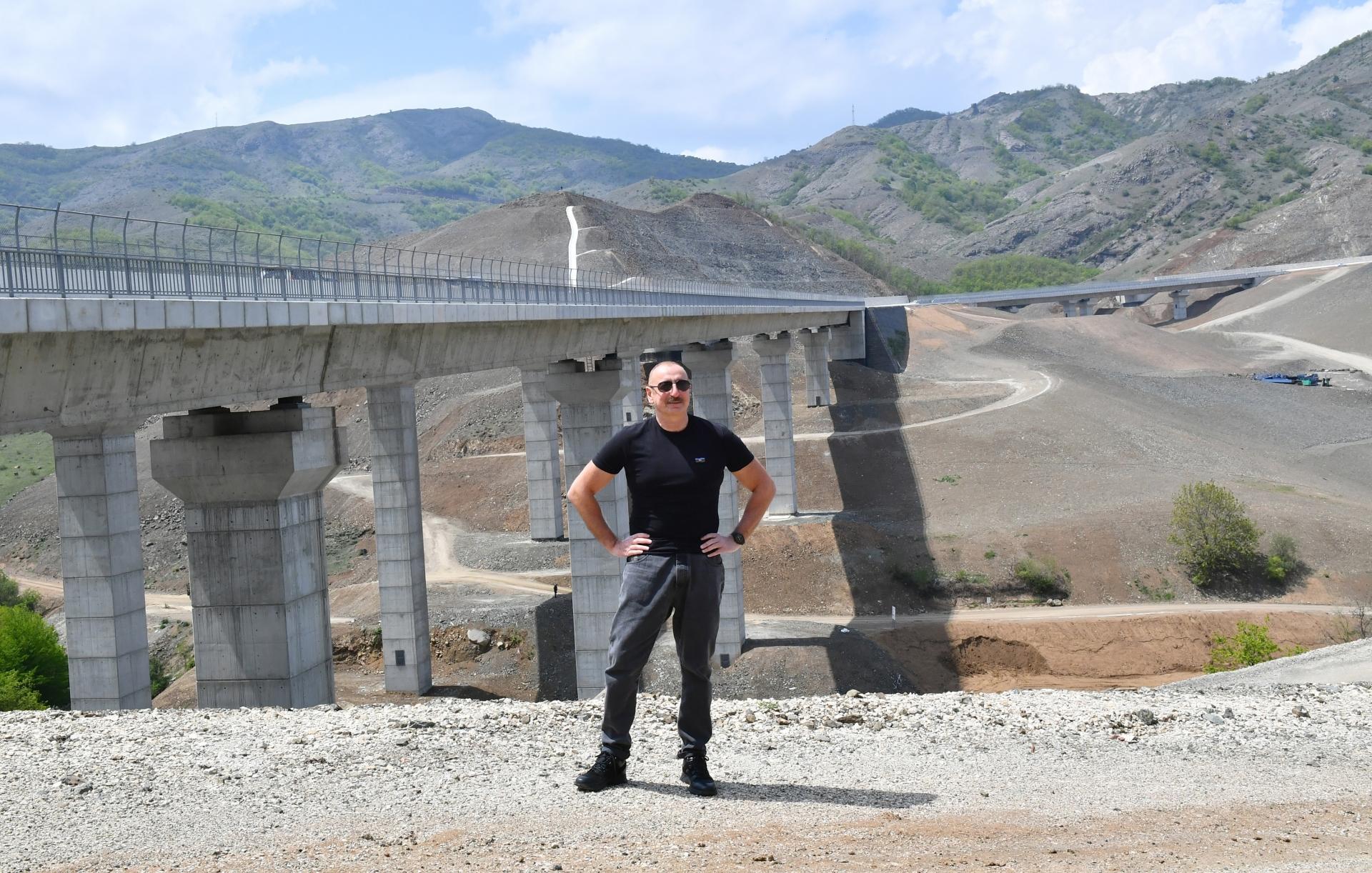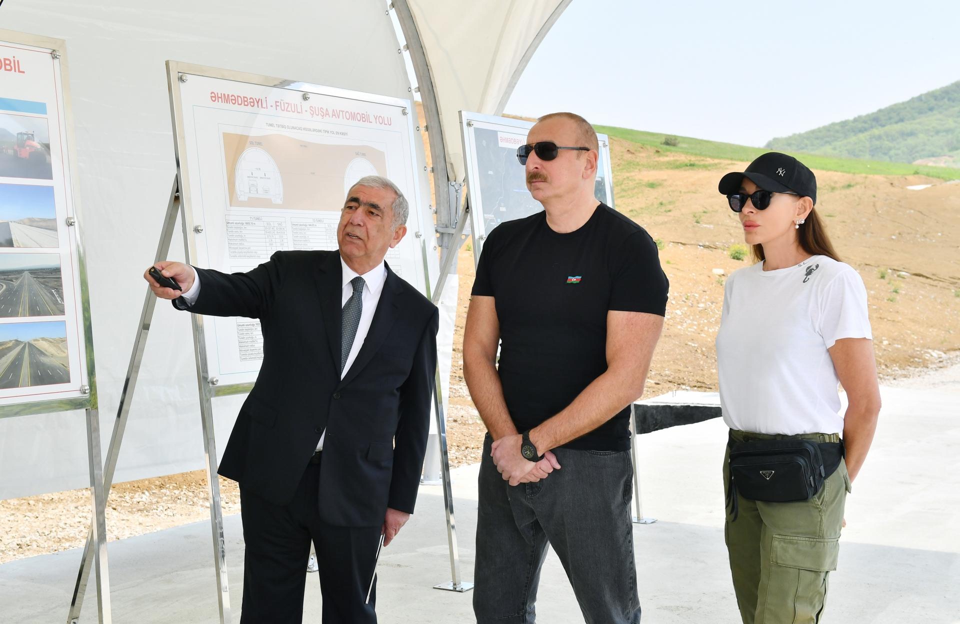 Teleqraf.com xəbər verir ki, dövlət başçısı və birinci xanım Əhmədbəyli-Füzuli-Şuşa magistral avtomobil yolunun 66-81-ci kilometrliyində görülən işlərlə tanış olublar.