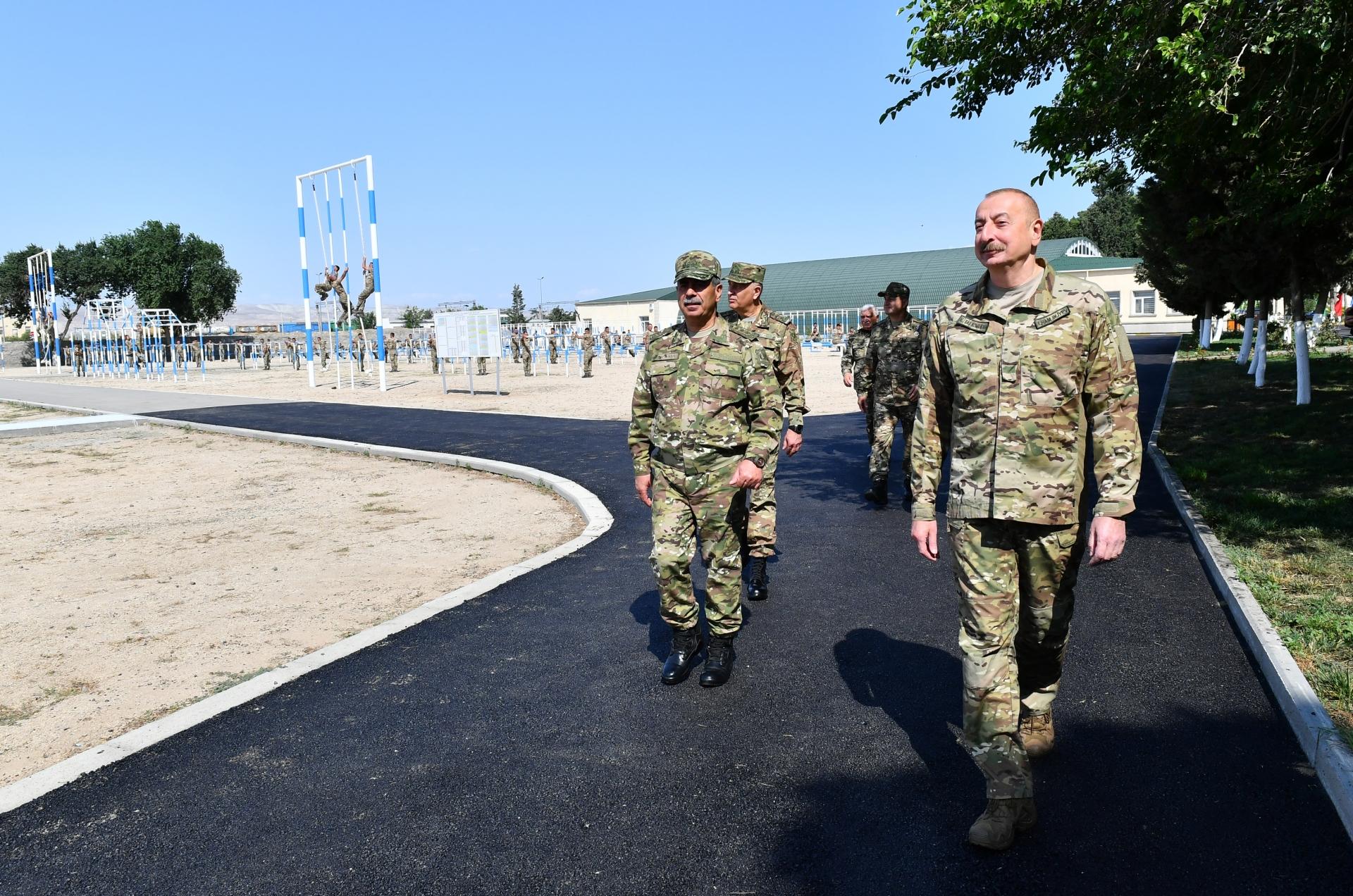 Hərbi hissədəki açıq idman şəhərciyində isə güc məşğələlərinin icrası üçün avadanlıqlar, dözümlülüyün artırılması məqsədilə maneələr zolağı, eləcə də futbol, voleybol, uzunluğa və hündürlüyə tullanma meydançaları yaradılıb. Ali Baş Komandan burada komandoların intensiv hazırlıq məşqlərini izlədi.