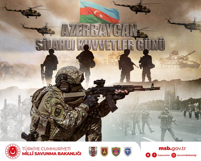 #Azerbaycan Silahlı Kuvvetlerinin 105’inci Kuruluş Yıl Dönümü kutlu olsun. Azerbaycan Türkü kardeşlerimizin huzur ve güvenliği için kahramanca ve fedakârca görev yapan güçlü Azerbaycan Silahlı Kuvvetleri ile tek yumruk, tek yürek olmaya devam edeceğiz!#TekMilletİkiDevlet pic.twitter.com/fs83RGEeGj